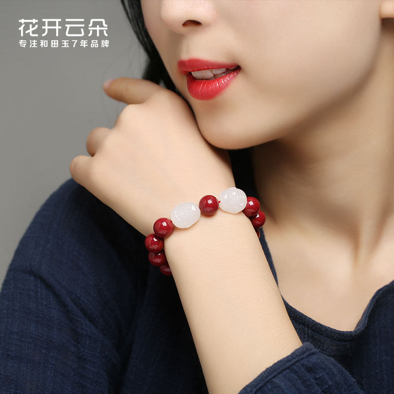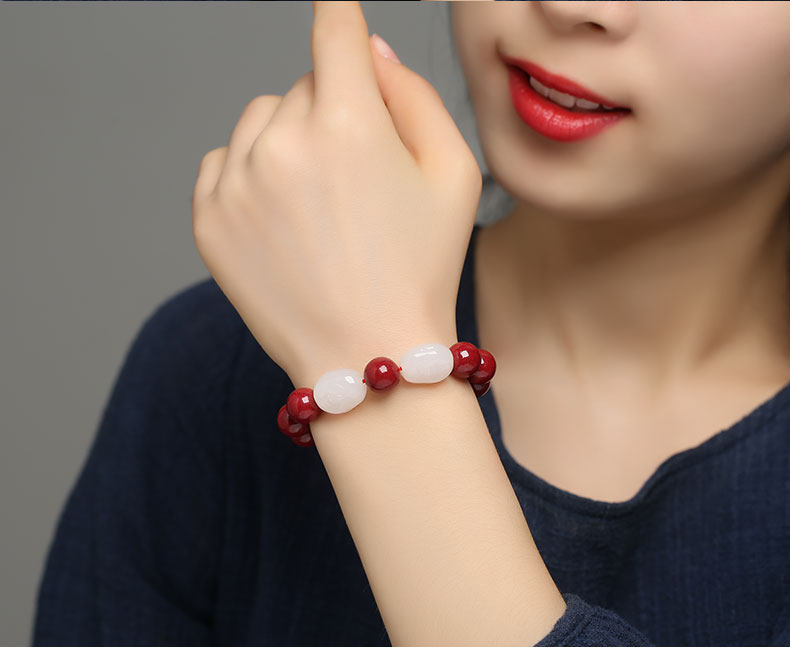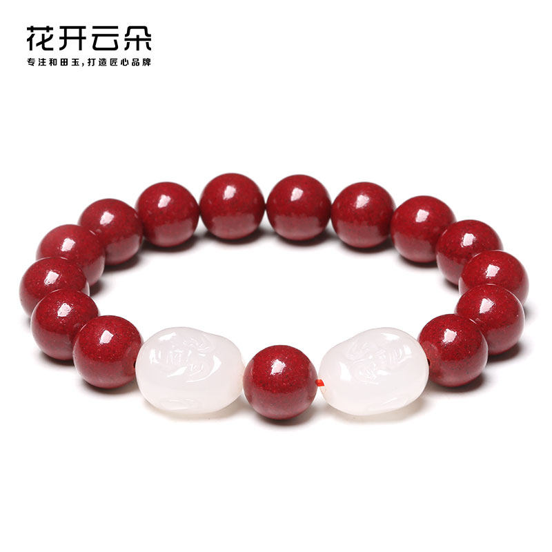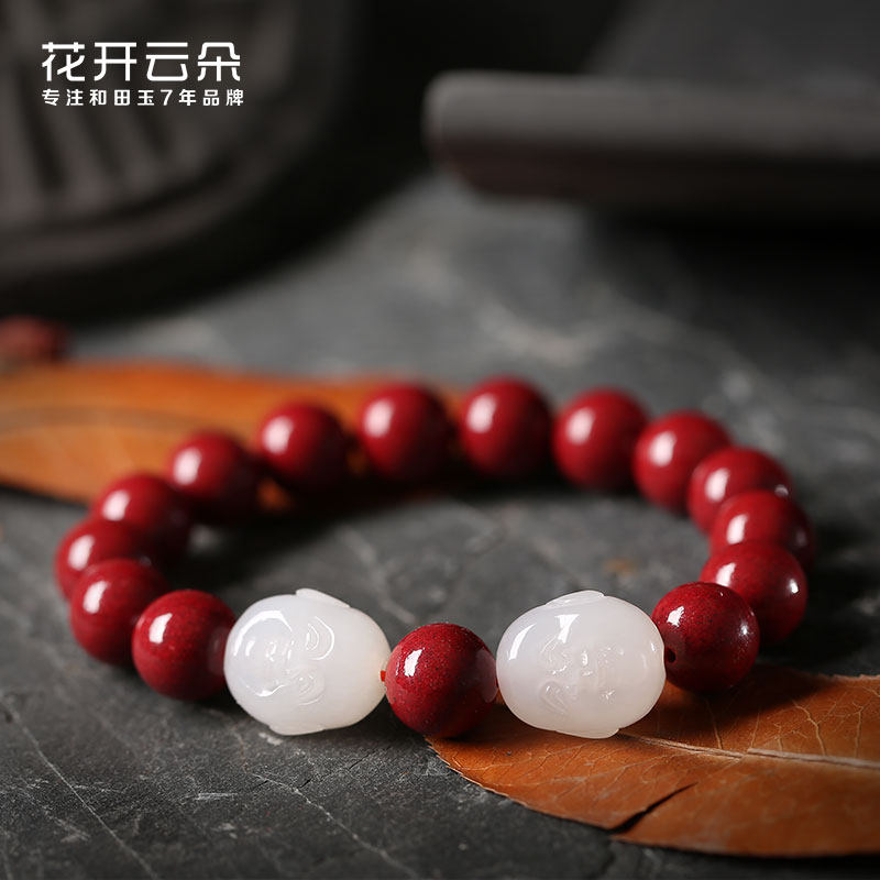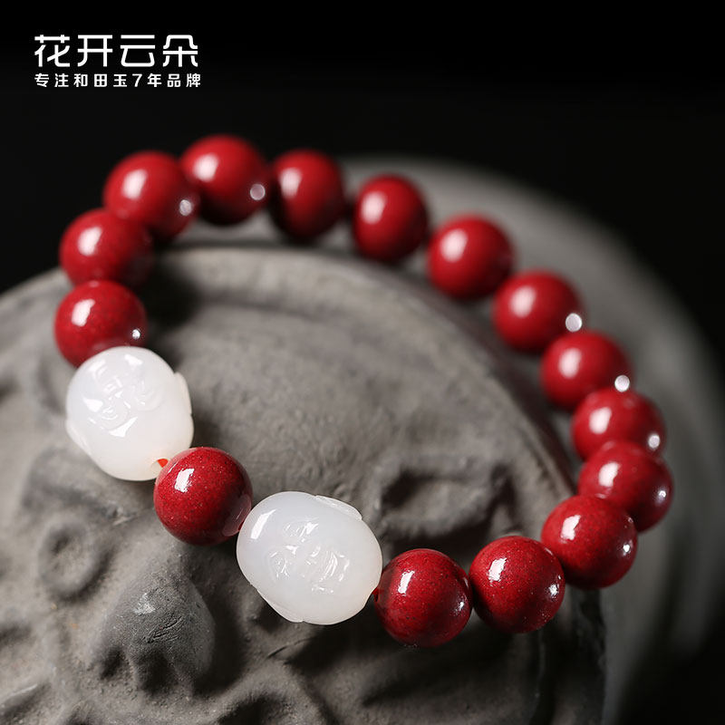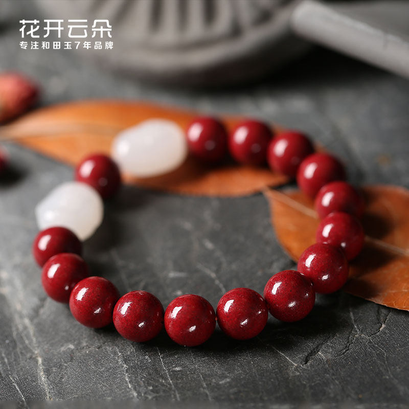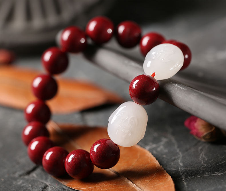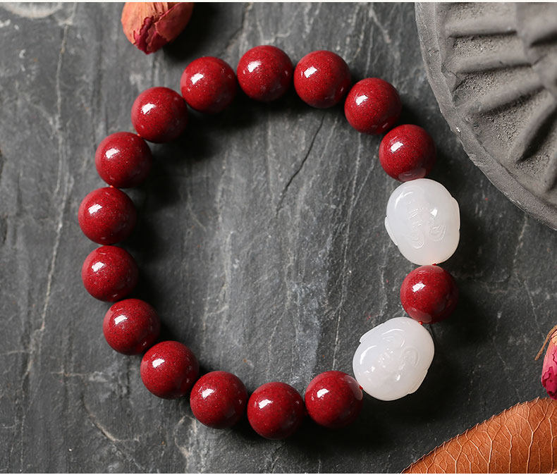 Натуральный браслет из нефрита, амулет, оберег на день рождения, четки из круглых бусин, цвета киновари