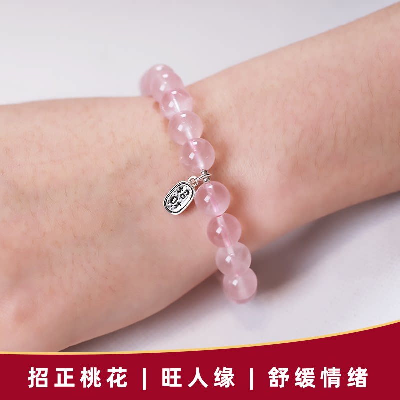 Натуральный кварц, браслет из кварца, розовые бусины, серебро 925 пробы