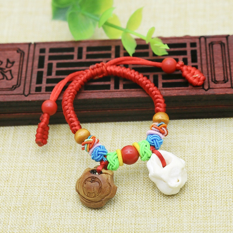 Ручная ткань красная нить персиковой древесный браслет младенца детские аксессуары король браслет узел узел