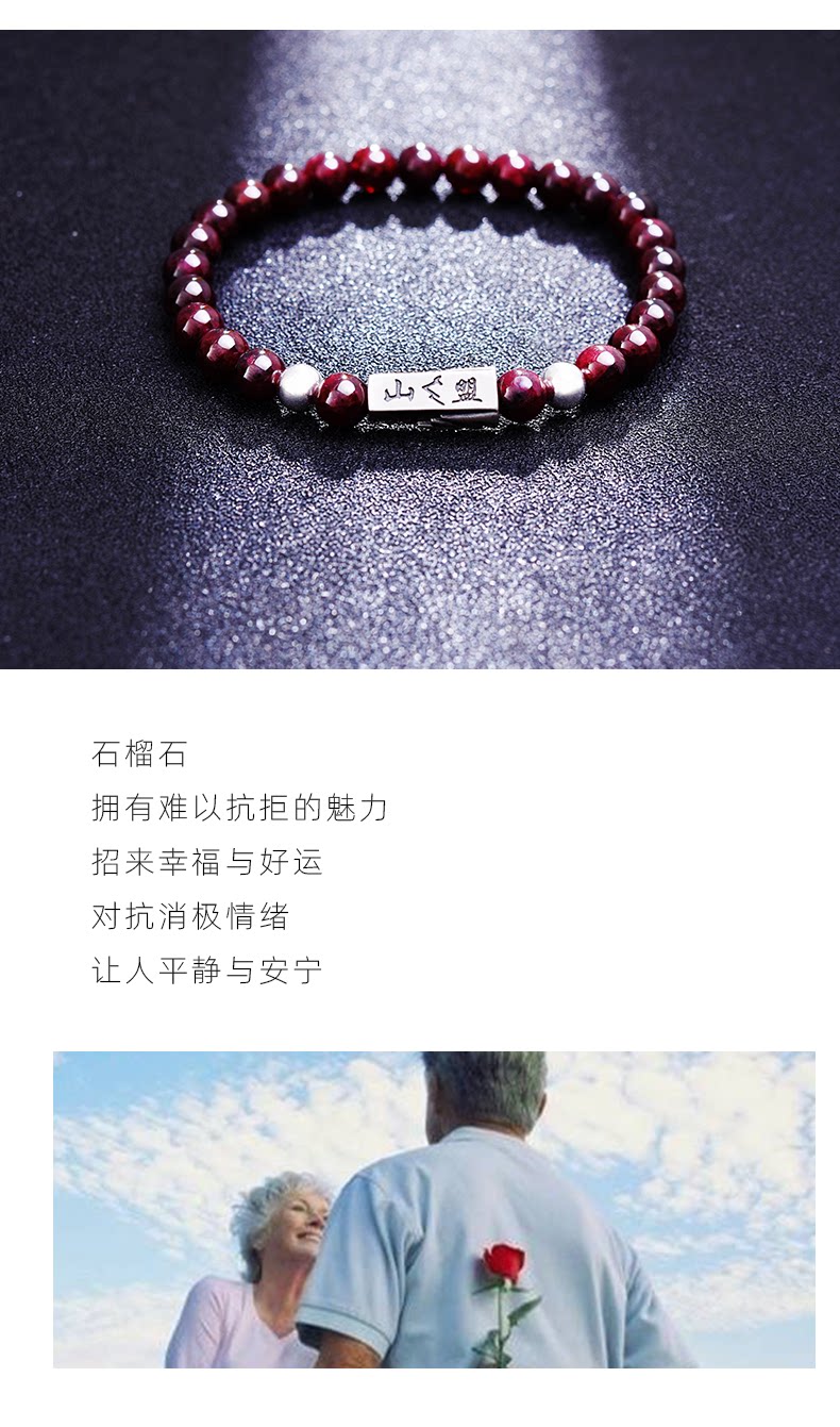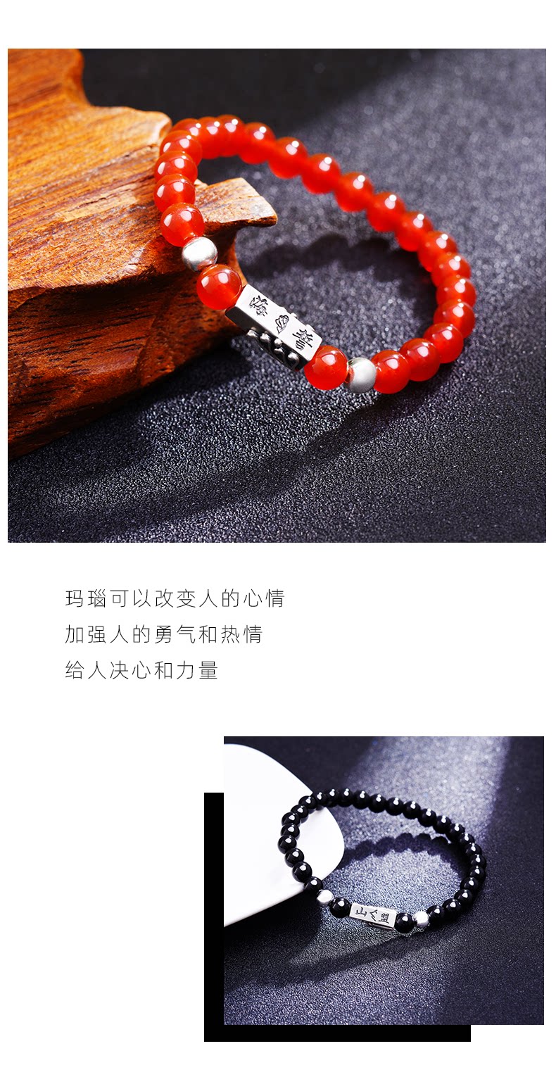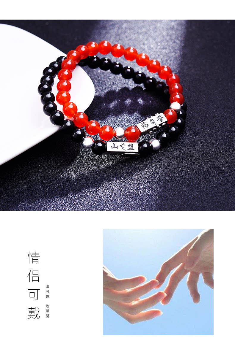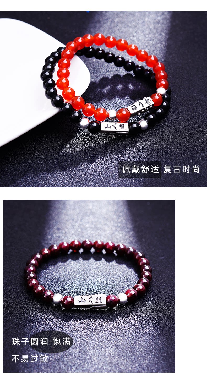 Серебряный браслет для влюбленных подходит для мужчин и женщин, агатовый браслет из бисера из граната, ювелирное украшение, серебро 925 пробы