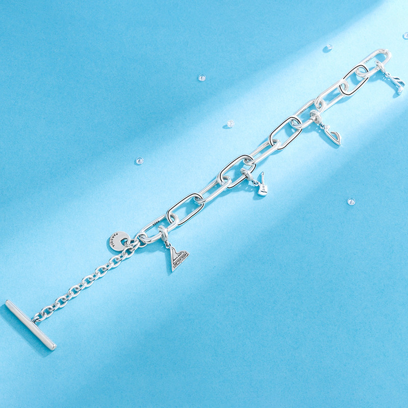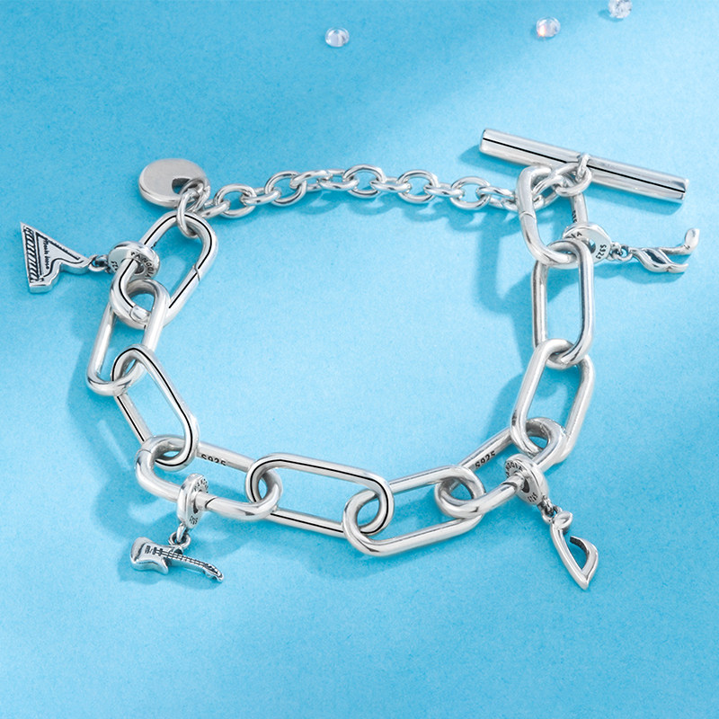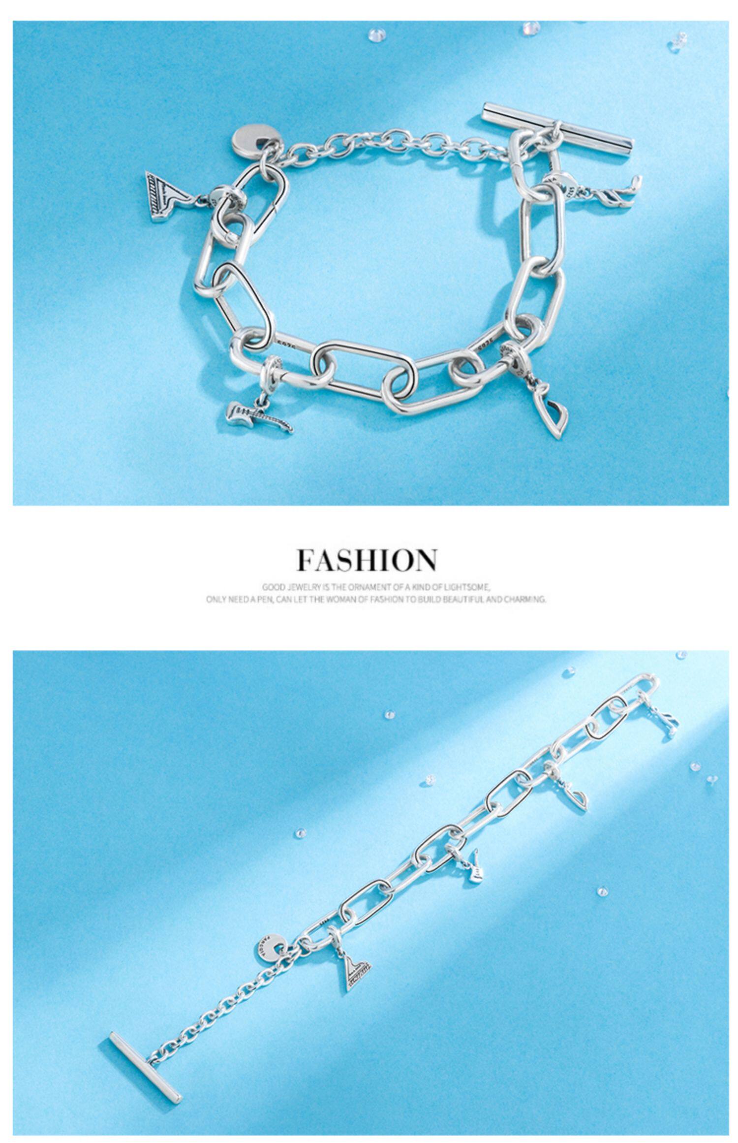 Брендовый небольшой дизайнерский серебряный браслет, серебро 925 пробы, DIY, стиль