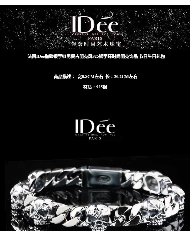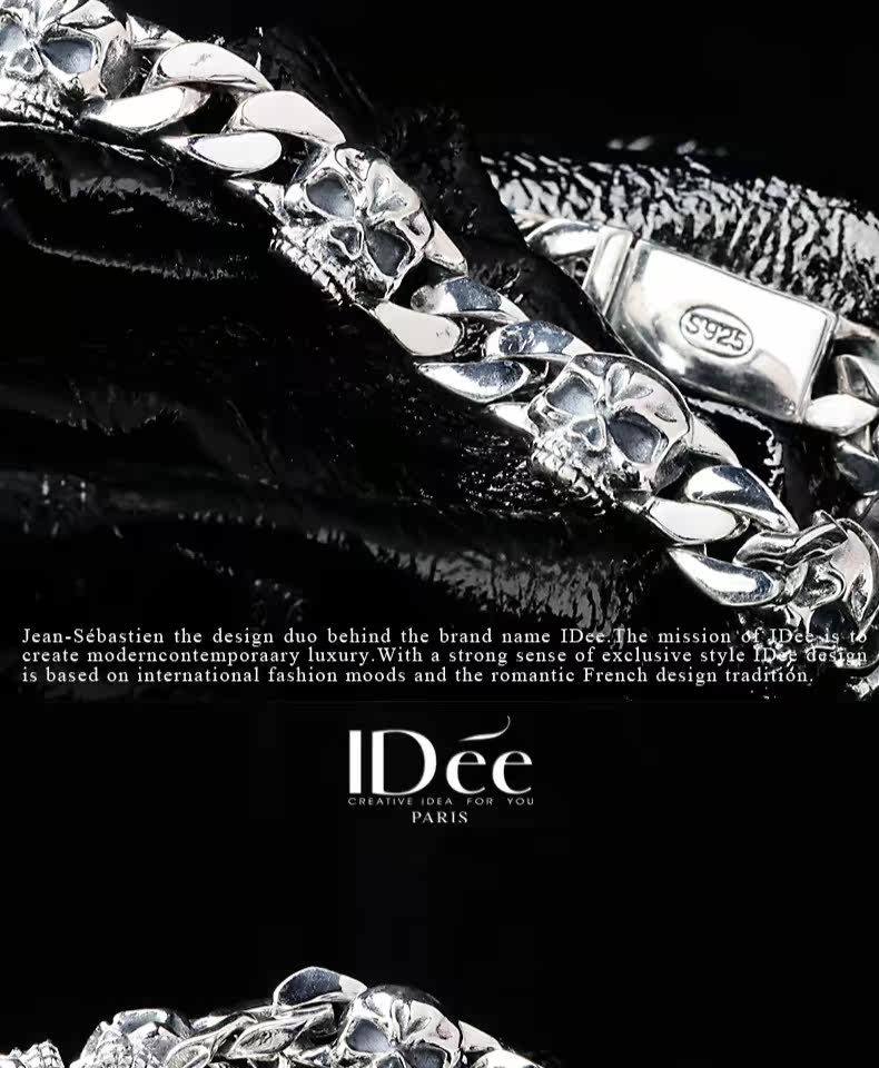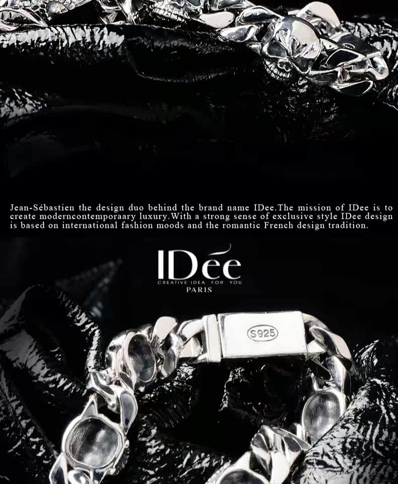 Мужской серебряный браслет в стиле хип-хоп, аксессуар, Франция, серебро 925 пробы, легкий роскошный стиль, серебро 925 пробы, изысканный стиль