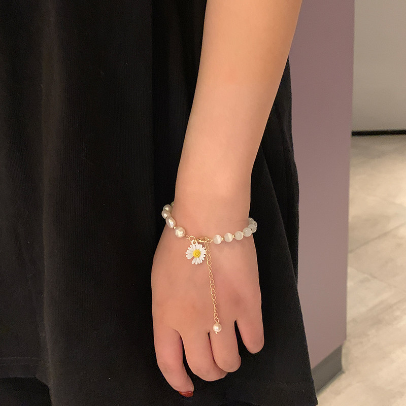 Натуральный свежий милый браслет из жемчуга, лунный камень, изысканный стиль, простой и элегантный дизайн, кошачий глаз