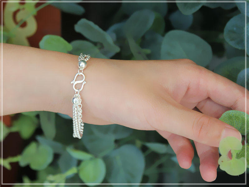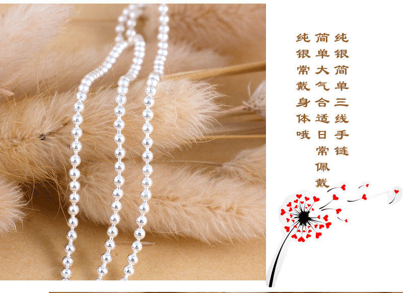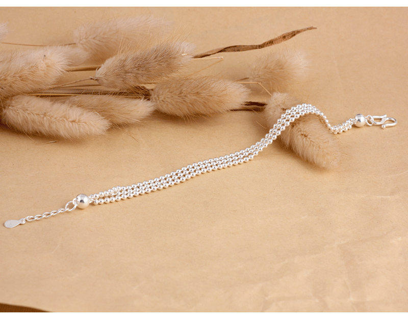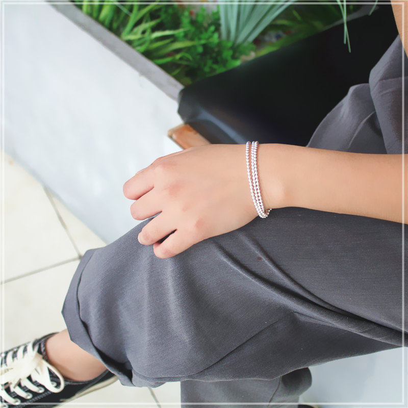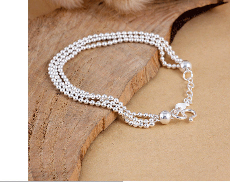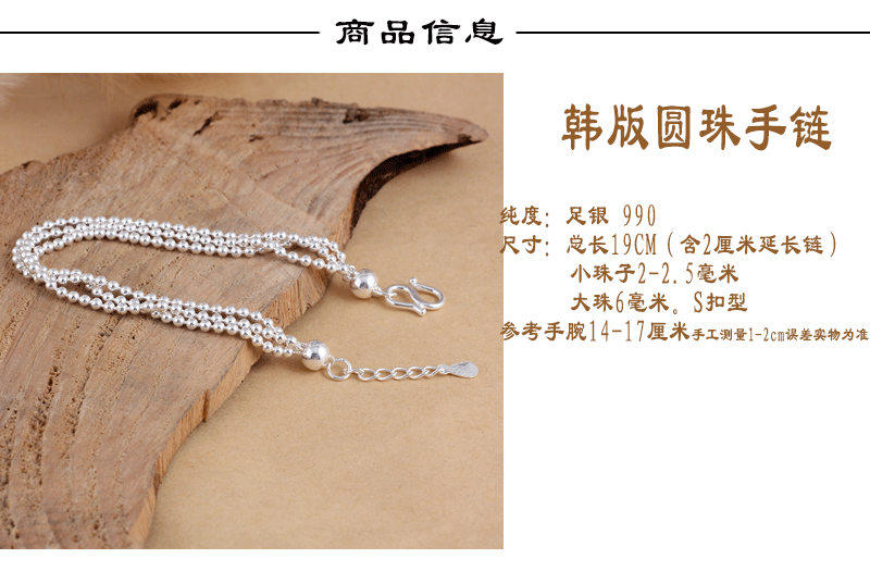 Серебряный браслет, глянцевое ретро украшение-шарик, четки из круглых бусин, ювелирное украшение, аксессуар, серебро 990 пробы, женский стиль