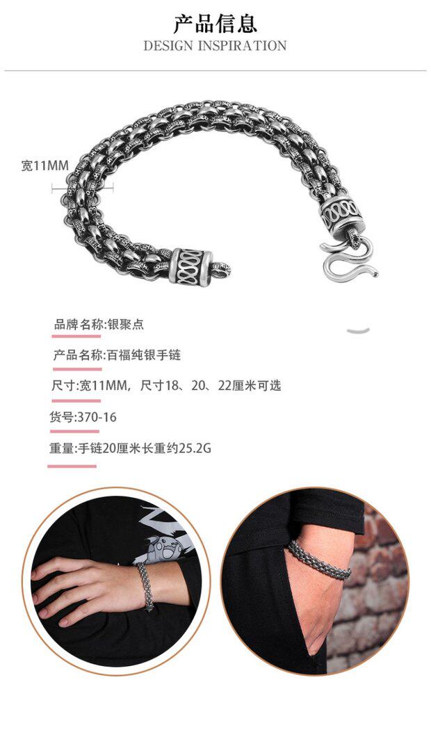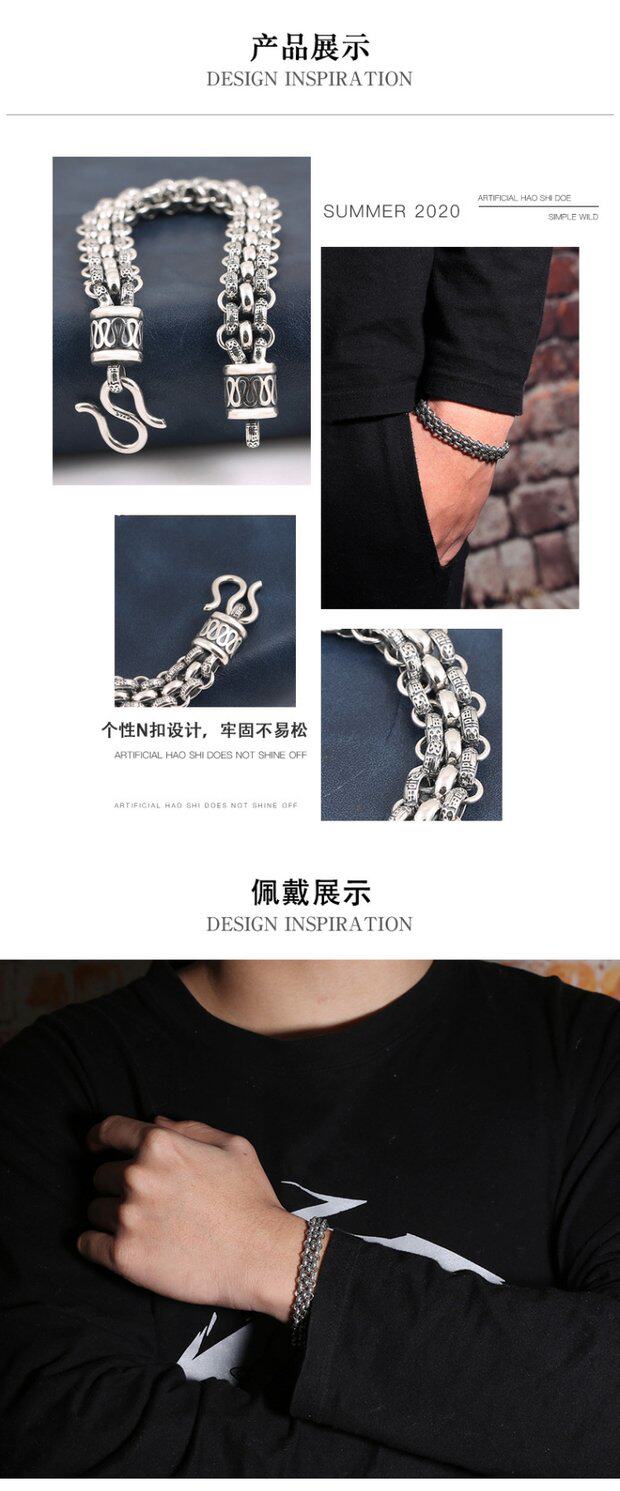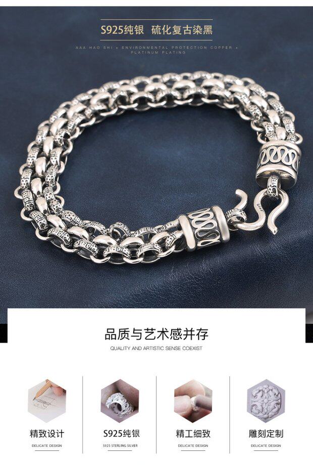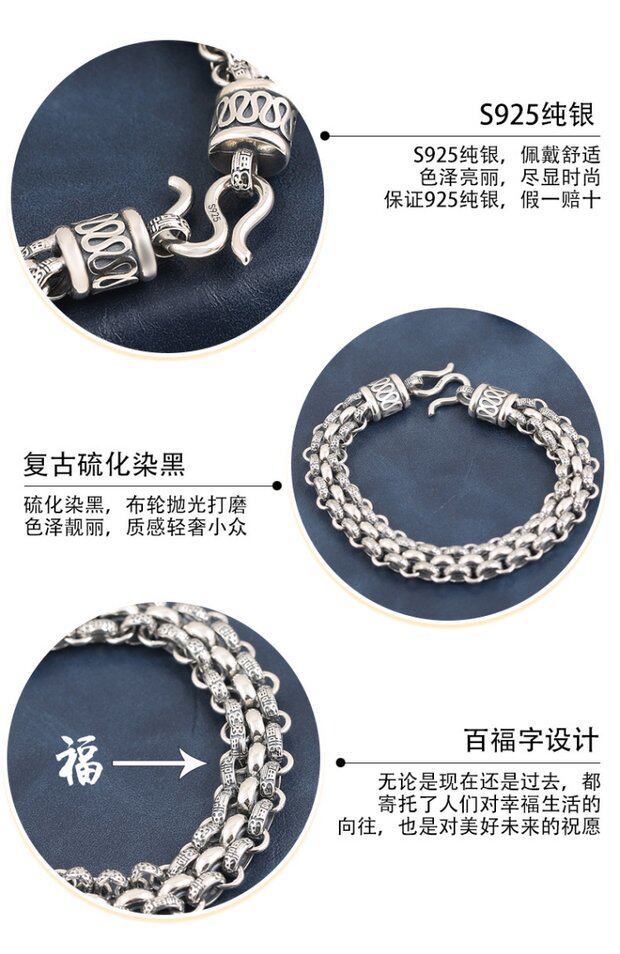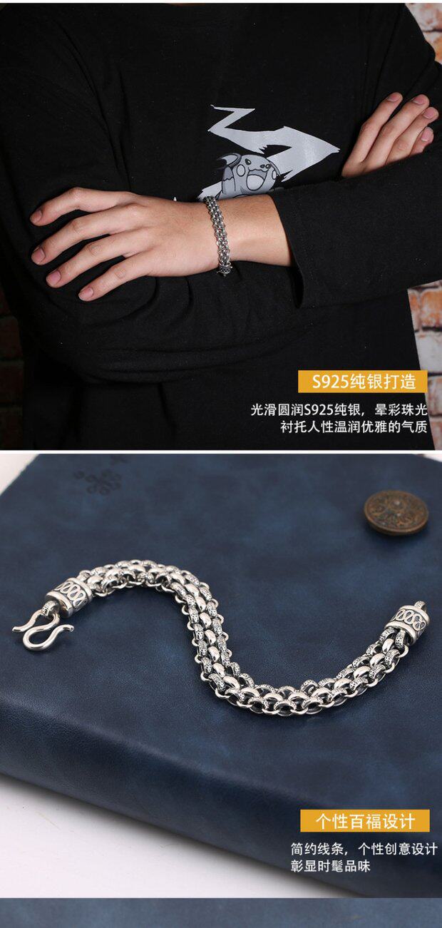 Ретро серебряный браслет, серебро 925 пробы, подарок на день рождения, легкий роскошный стиль
