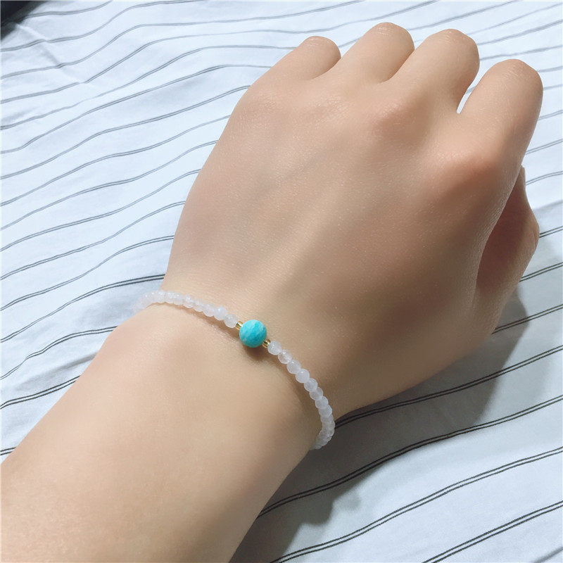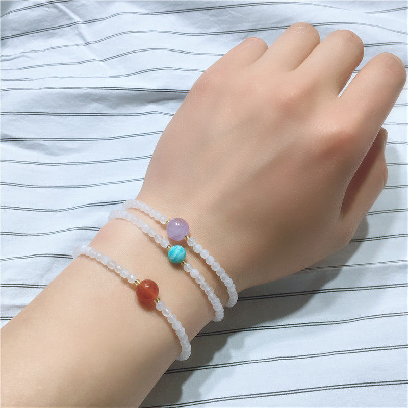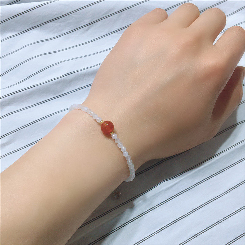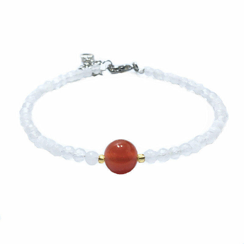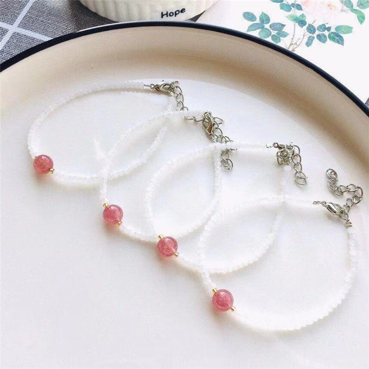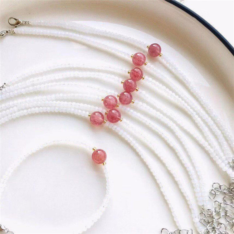 Оригинальные спецификации браслета натурального белого халцедония составляют около 3 мм, а кристаллы клубники - около 6 мм