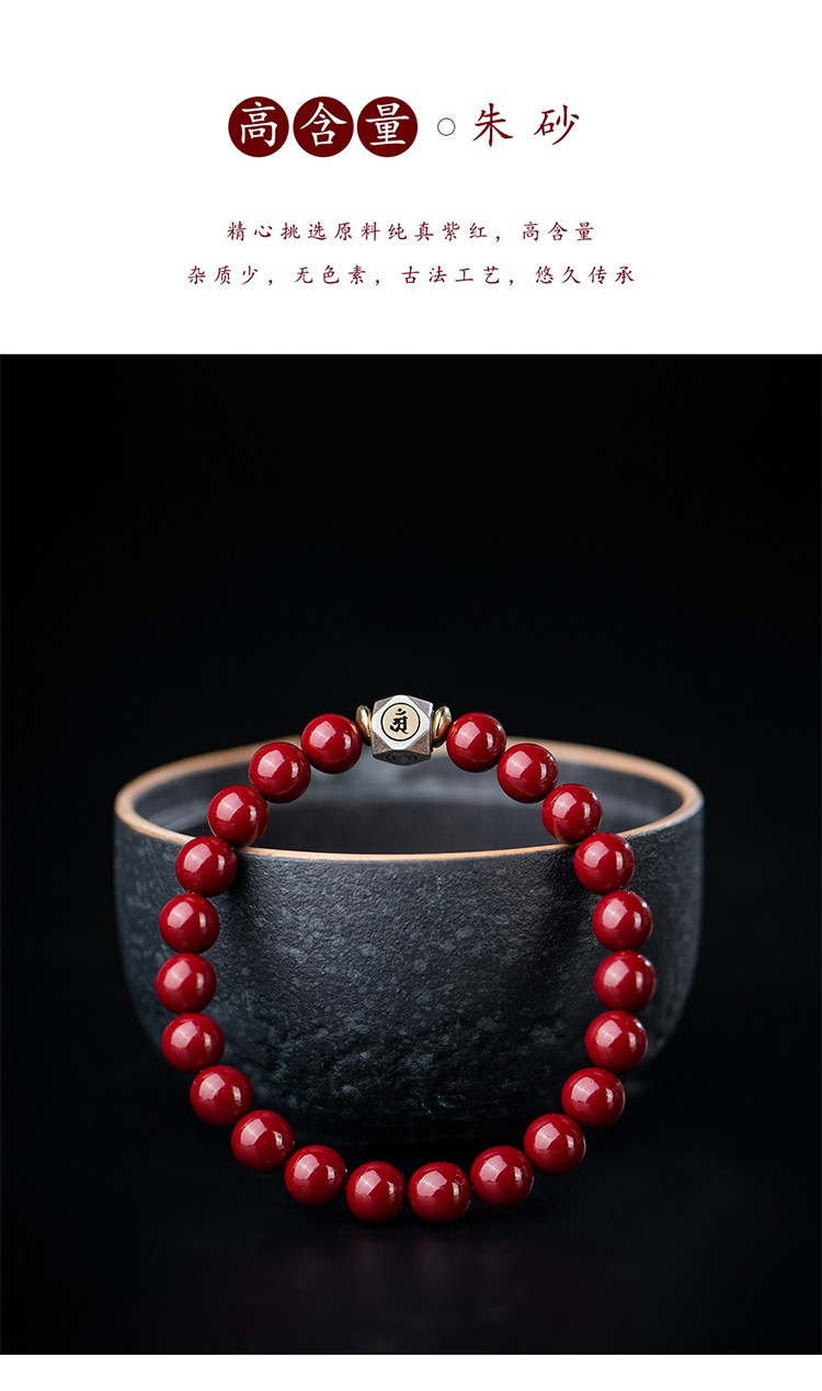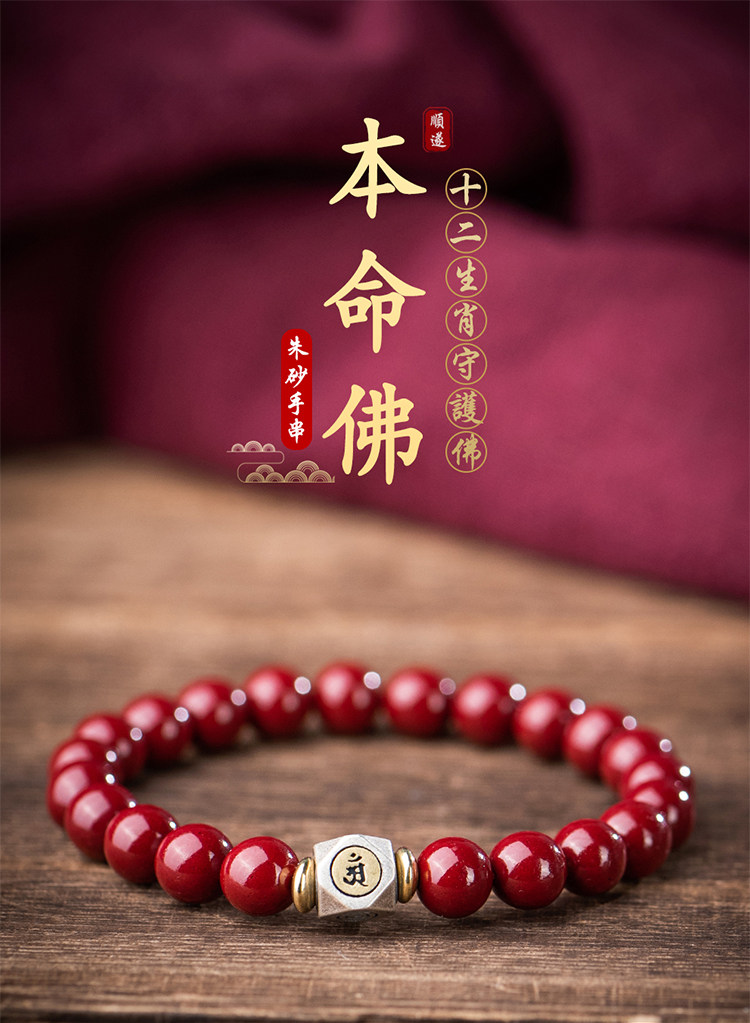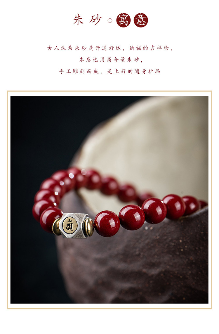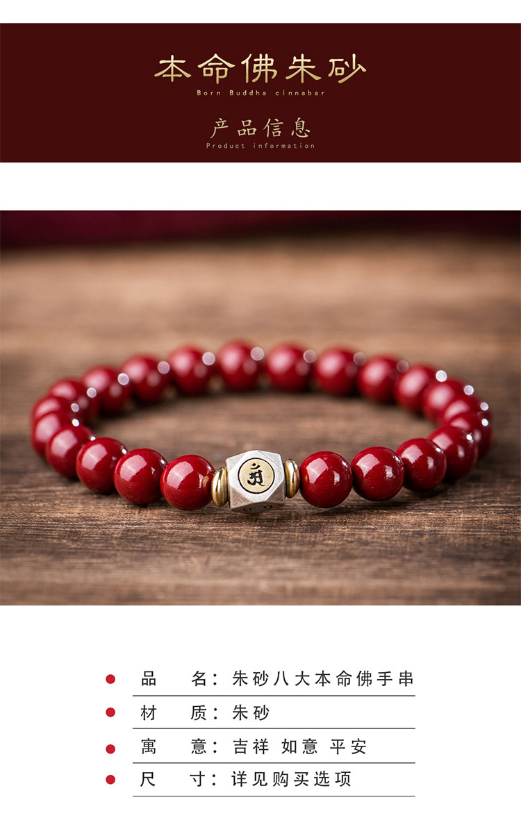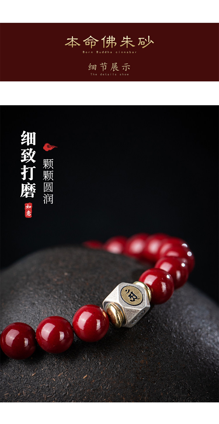Природная руда, мужской браслет из бусин, защитный амулет, цвета киновари, китайский гороскоп