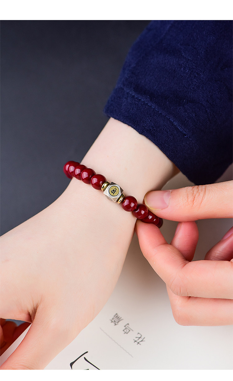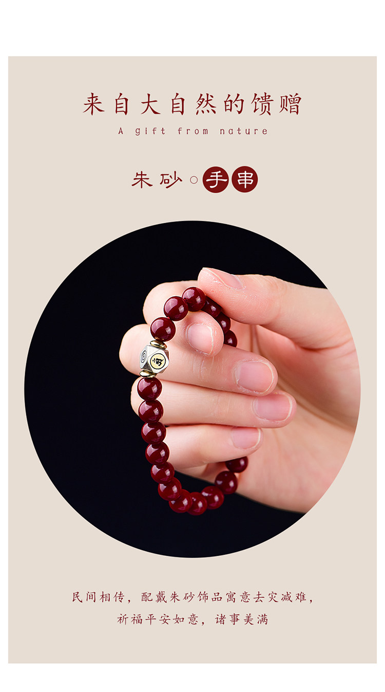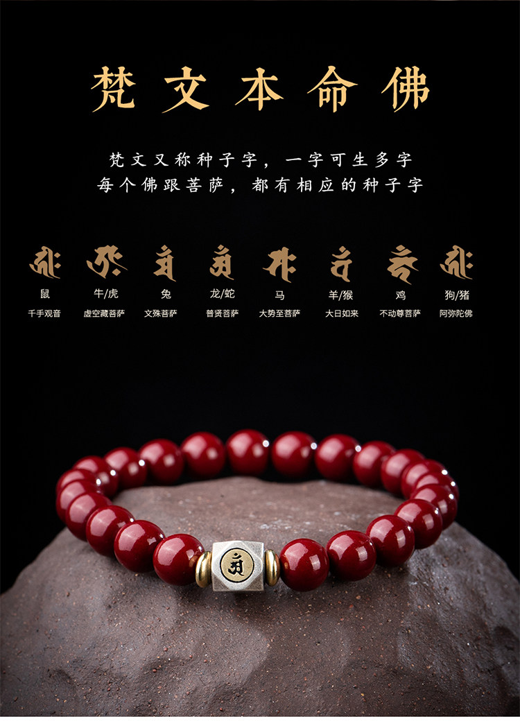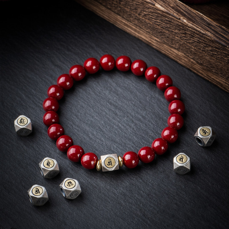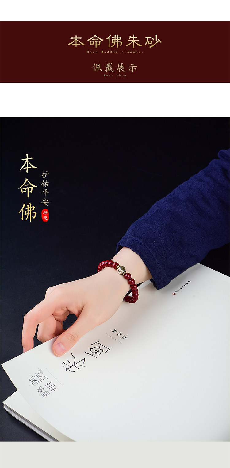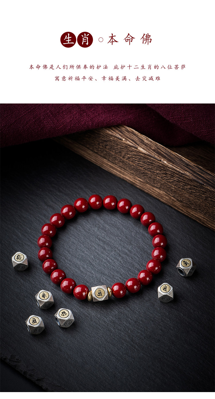 Природная руда, мужской браслет из бусин, защитный амулет, цвета киновари, китайский гороскоп