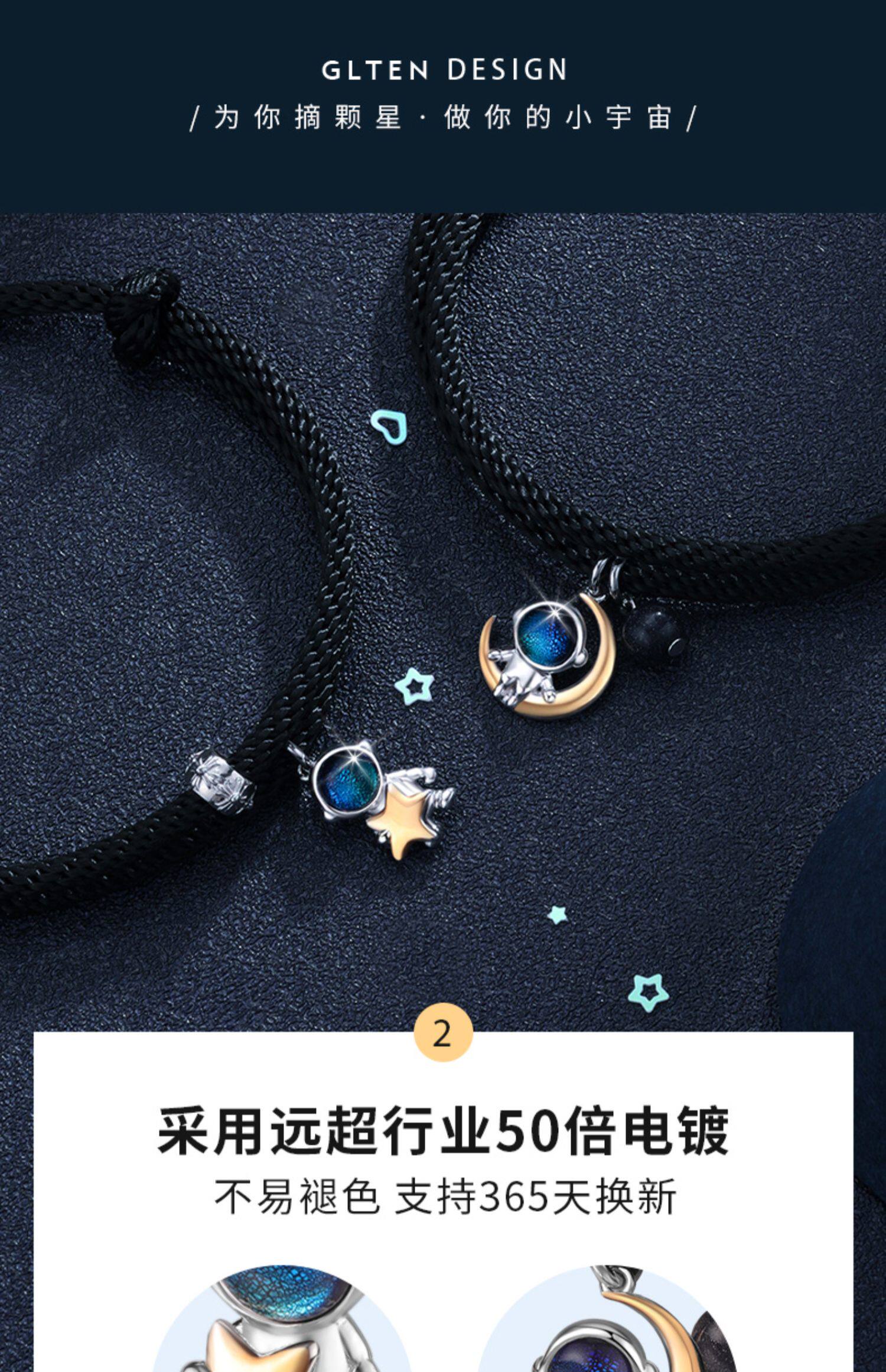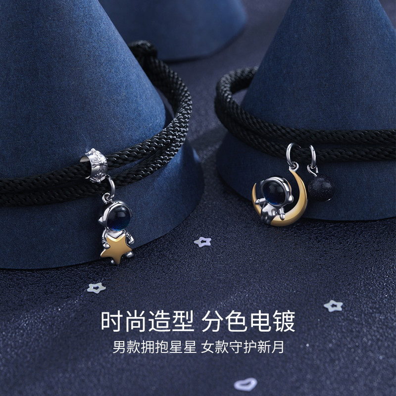 Космонавт, небольшой дизайнерский памятный браслет подходит для мужчин и женщин, для влюбленных, серебро 925 пробы, тренд сезона, подарок на день рождения