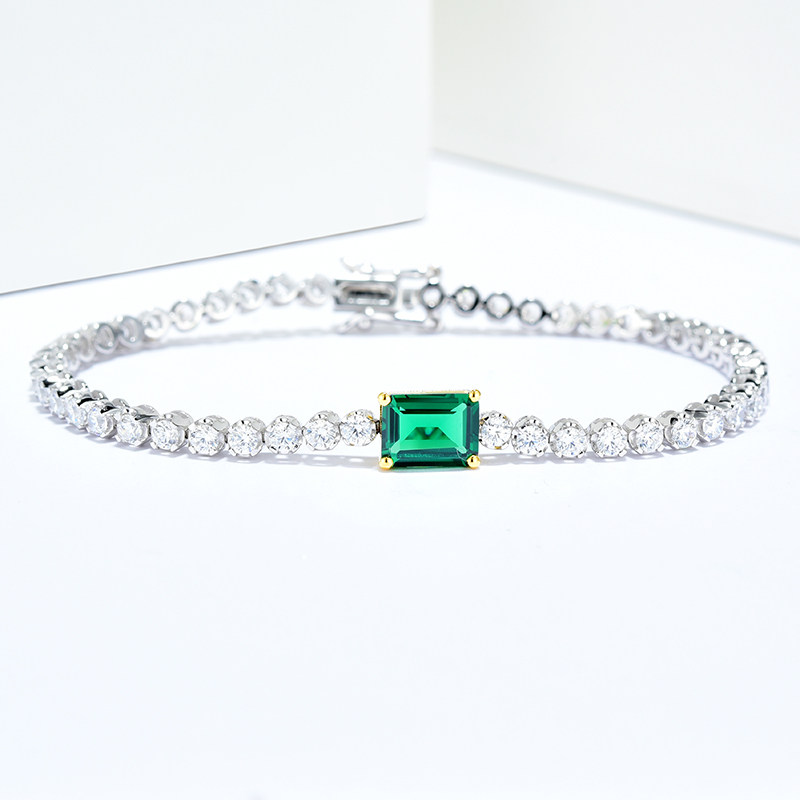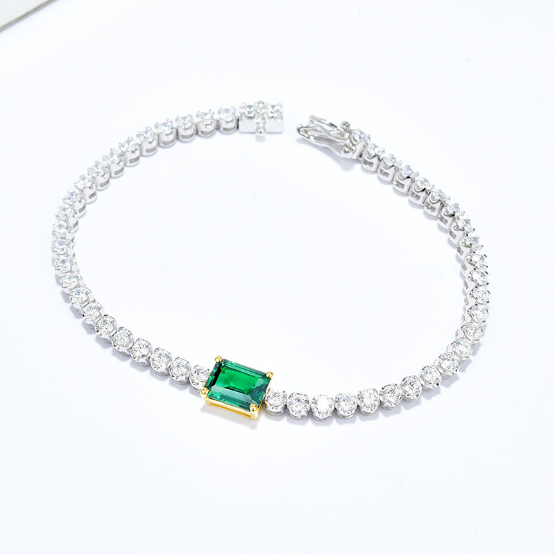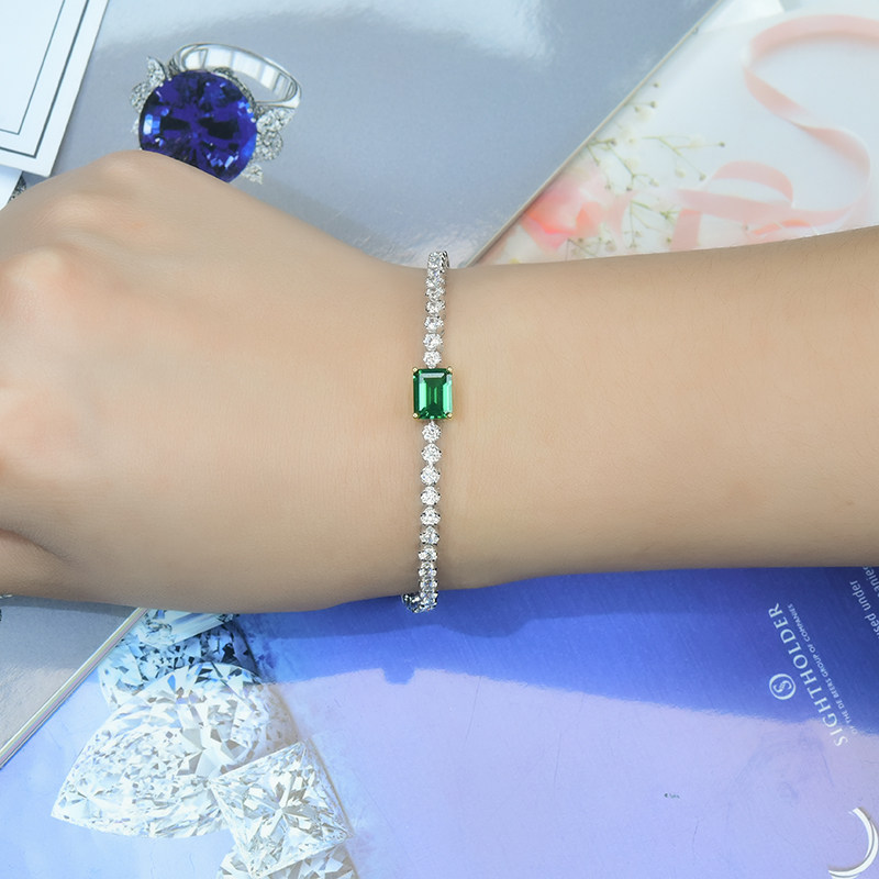 Ювелирное украшение, двухцветная инкрустация камня изумруд, брендовый браслет, серебро 925 пробы, с драгоценным камнем, простой и элегантный дизайн