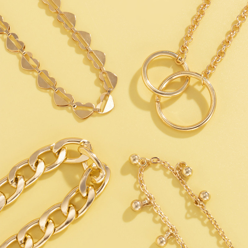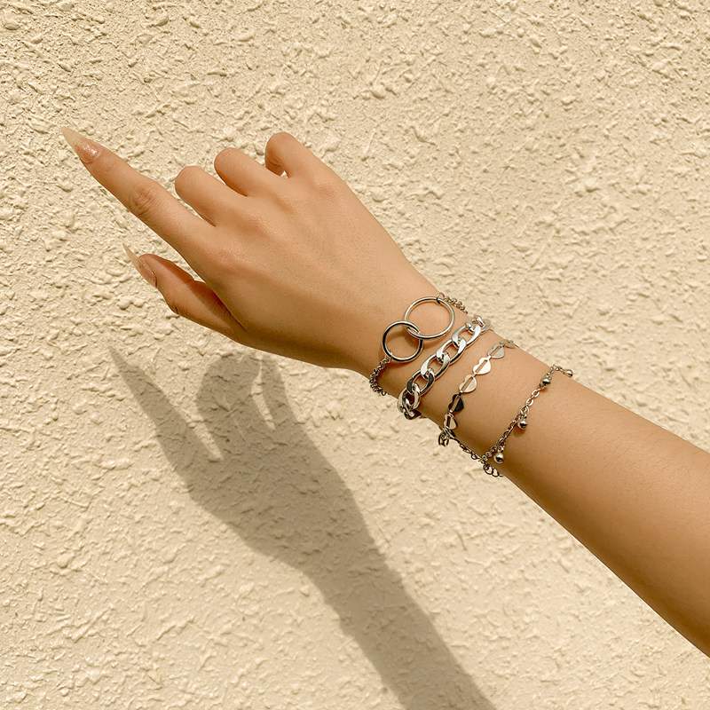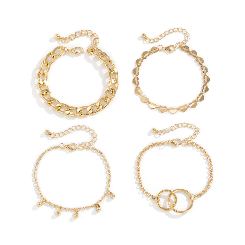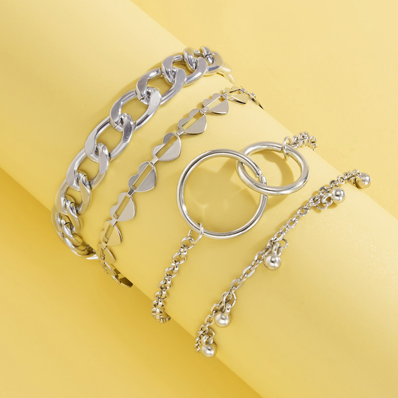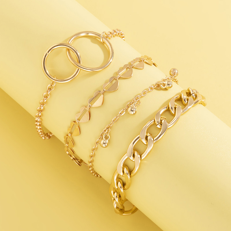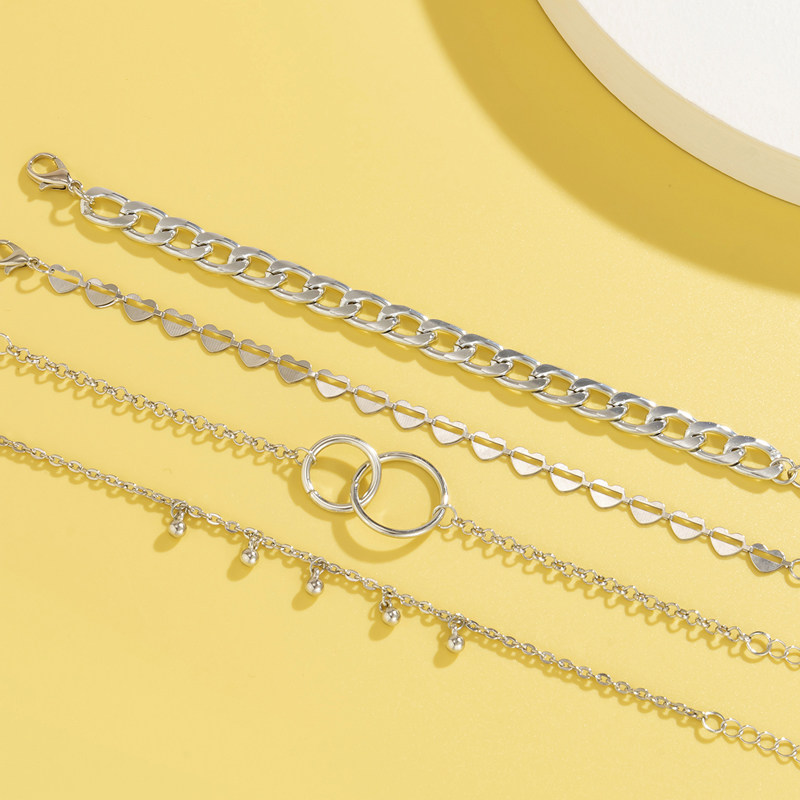 Цепь в виде сердечка, браслет, милый комплект, ювелирное украшение для путешествий, аксессуар, 4 шт, европейский стиль
