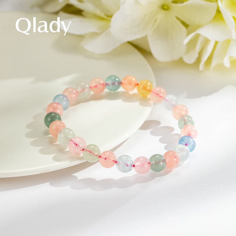 Натуральный многоцветный летний браслет из кварца, свежий кварц, ювелирный шарм, аксессуар для друга, подарок для девушки