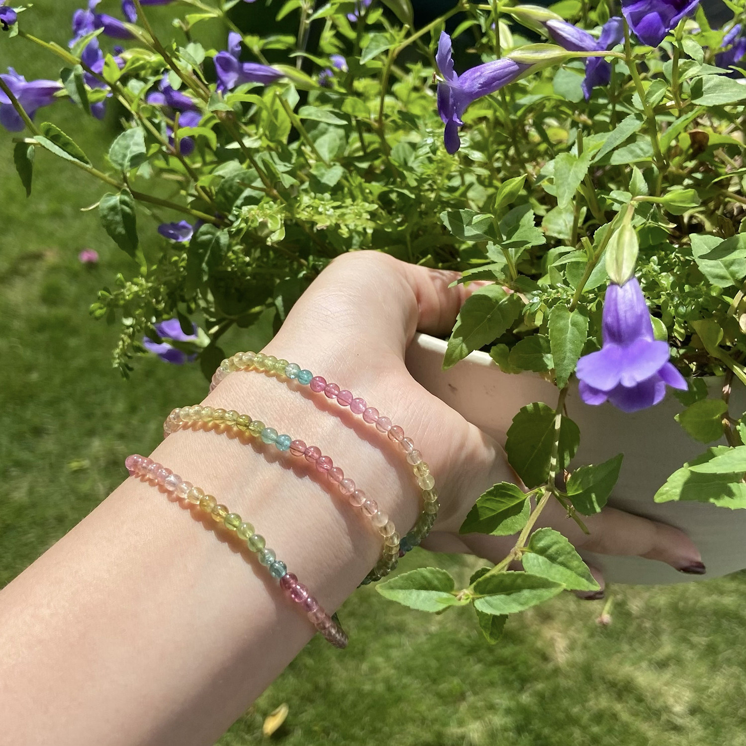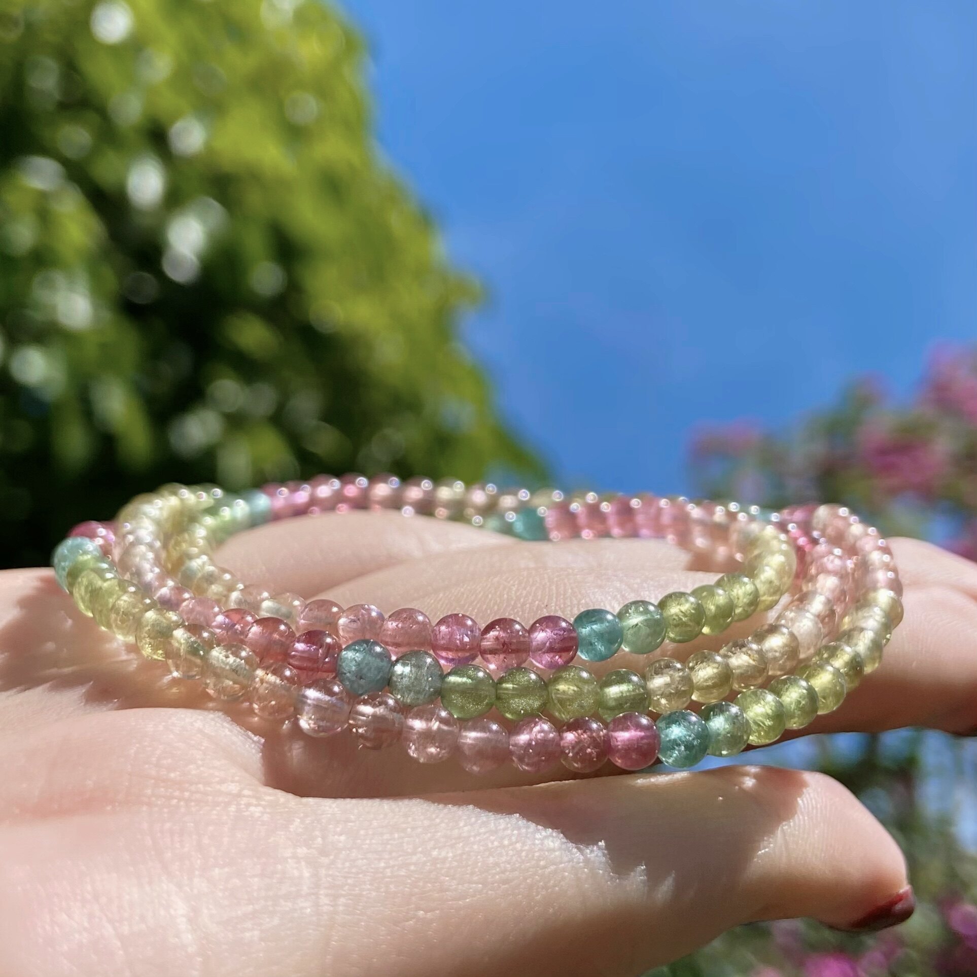 Натуральный турмалиновый радужный браслет, имитация льда, градиент
