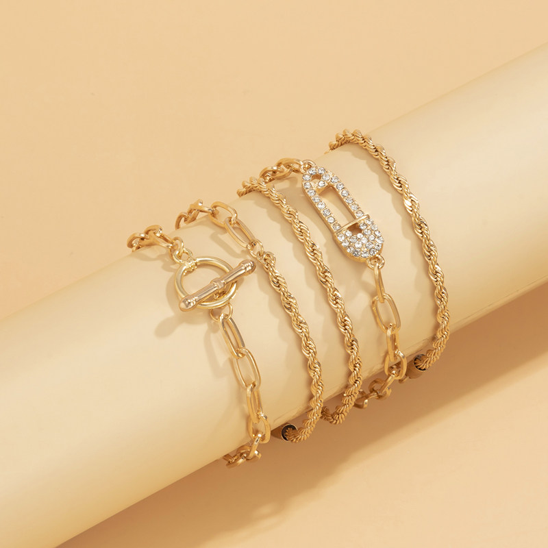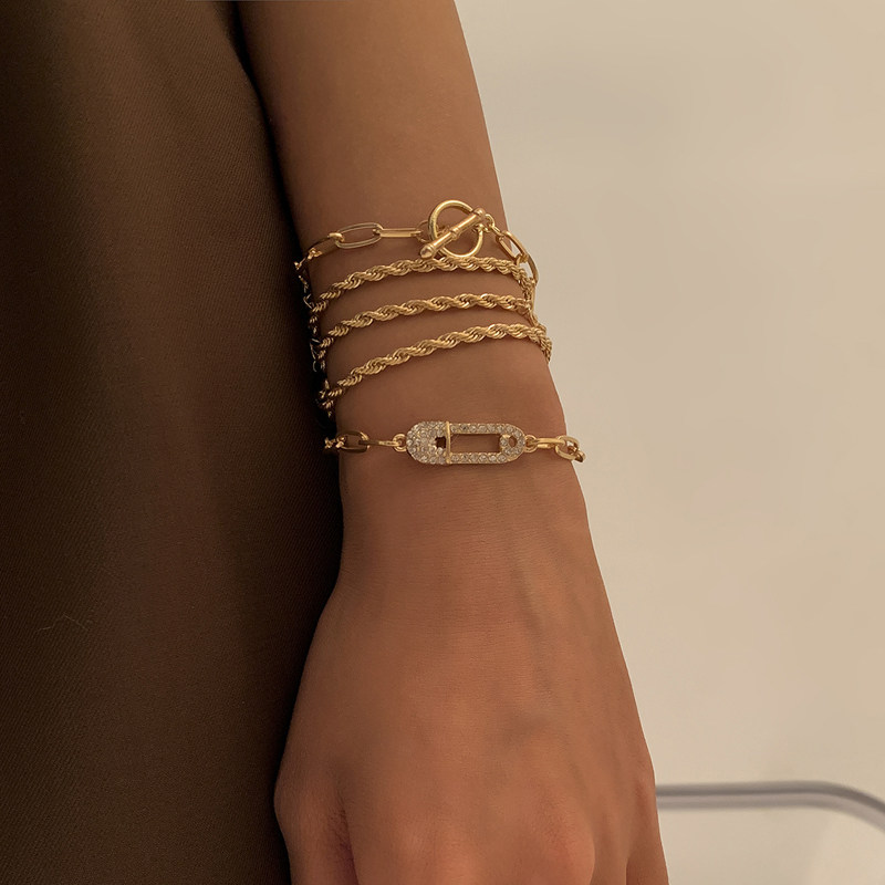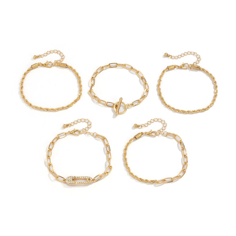Трендовый аксессуар, ретро цепь, геометричное ювелирное украшение, металлический универсальный браслет, 5 шт, европейский стиль, в стиле панк, простой и элегантный дизайн