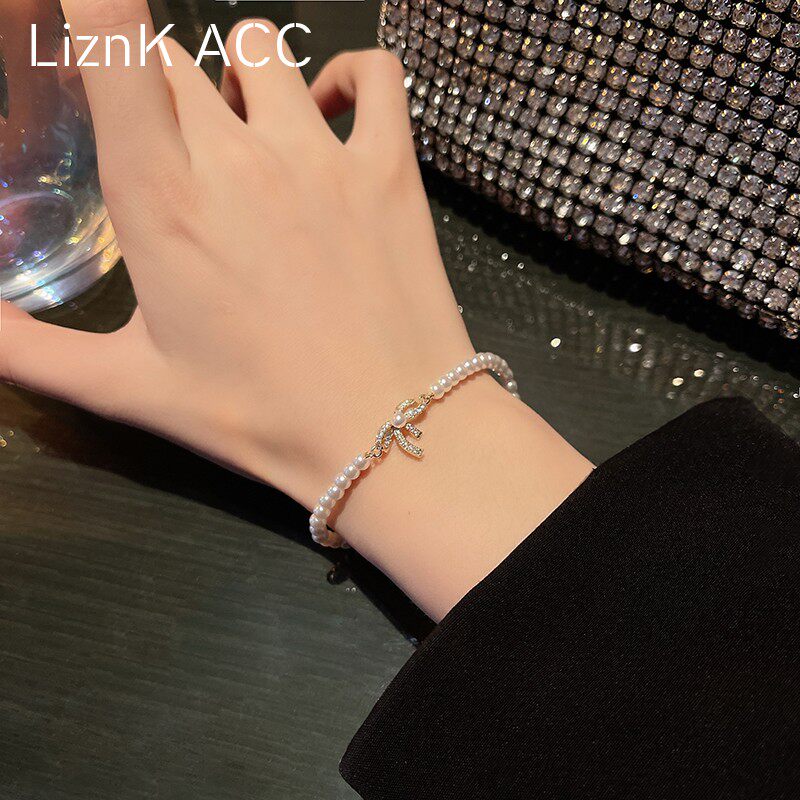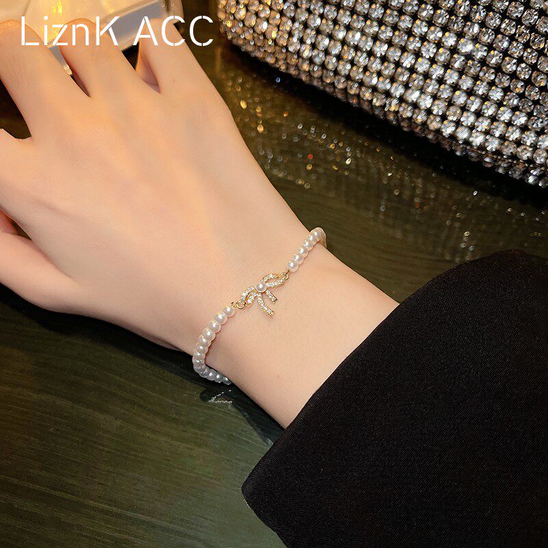 Брендовый небольшой дизайнерский браслет с бантиком из жемчуга, изысканный стиль, простой и элегантный дизайн, 2021 года