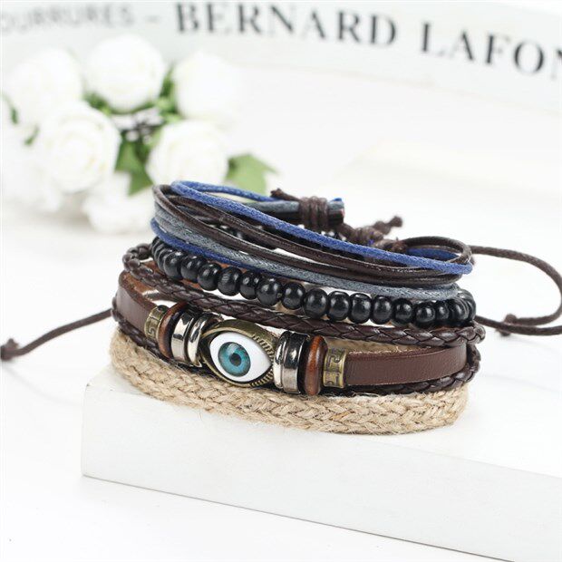 Мужской винтажный браслет с 4 частями Регулируемый мужской браслет