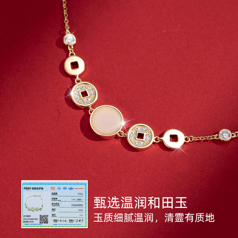 Изысканный медный браслет из нефрита для влюбленных, серебро 925 пробы, легкий роскошный стиль, коллекция 2023
