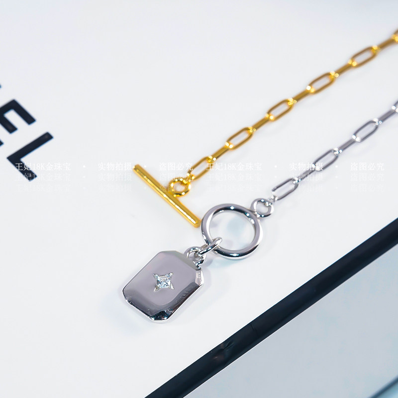 Платиновая подвеска, браслет, квадратное ювелирное украшение подходит для мужчин и женщин для влюбленных, простой и элегантный дизайн, белое золото 14 карат, изысканный стиль, европейский стиль