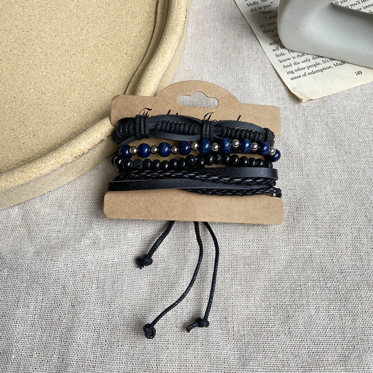 Черный мужской кожаный браслет 4 упаковки винтажный браслет мужской браслет