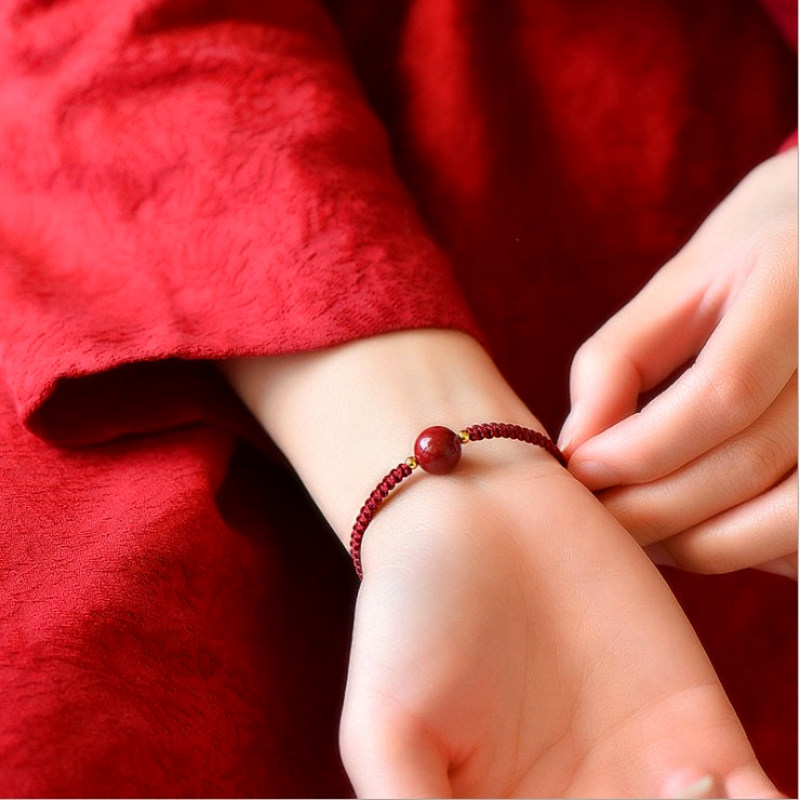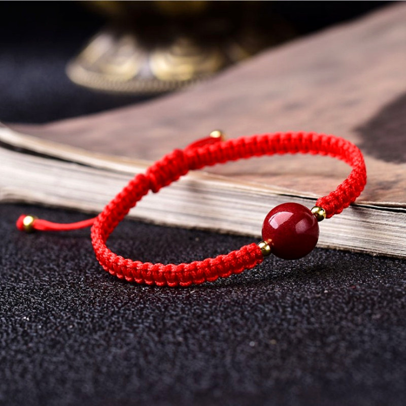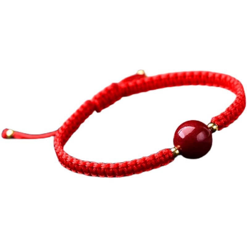 Креативный этнический аксессуар для влюбленных, плетеный браслет с одной бусиной, браслет из красной нити, природная руда, защитный амулет, пряжка, этнический стиль, цвета киновари