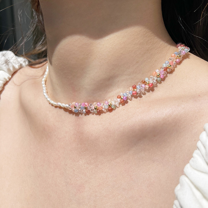 Браслет из бисера, милое ожерелье из жемчуга, Франция, в цветочек