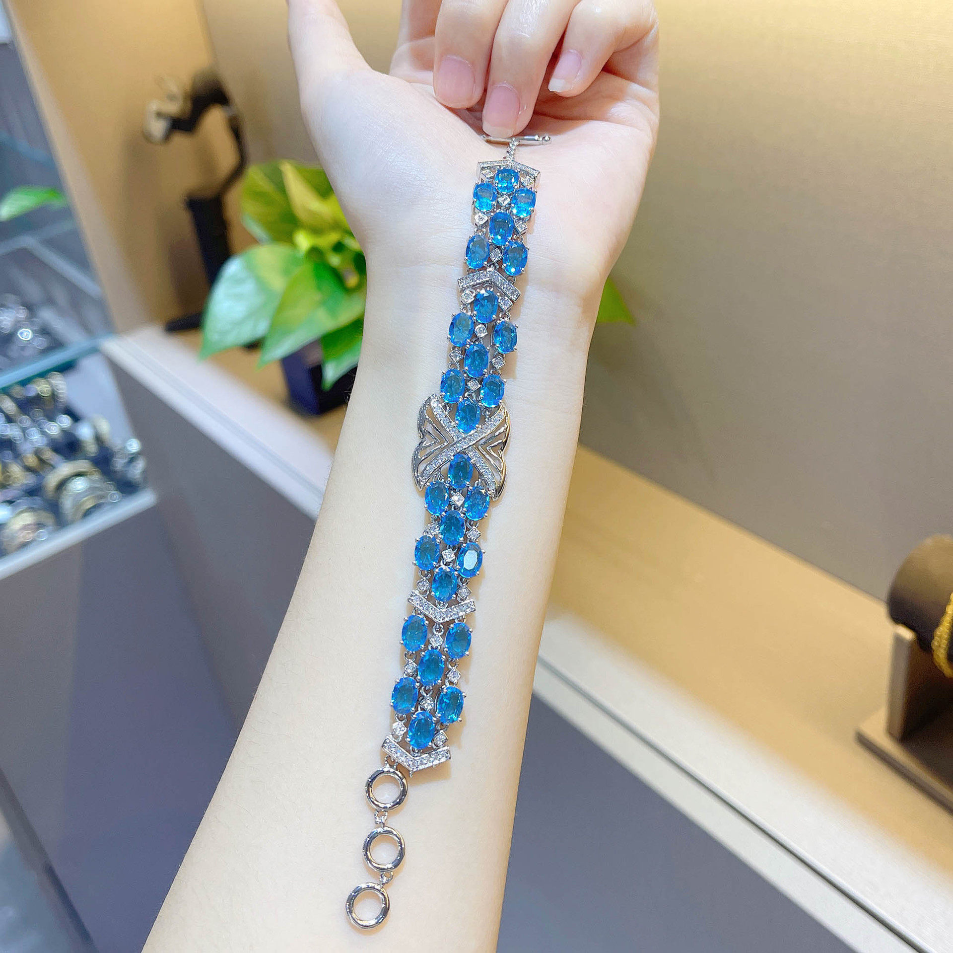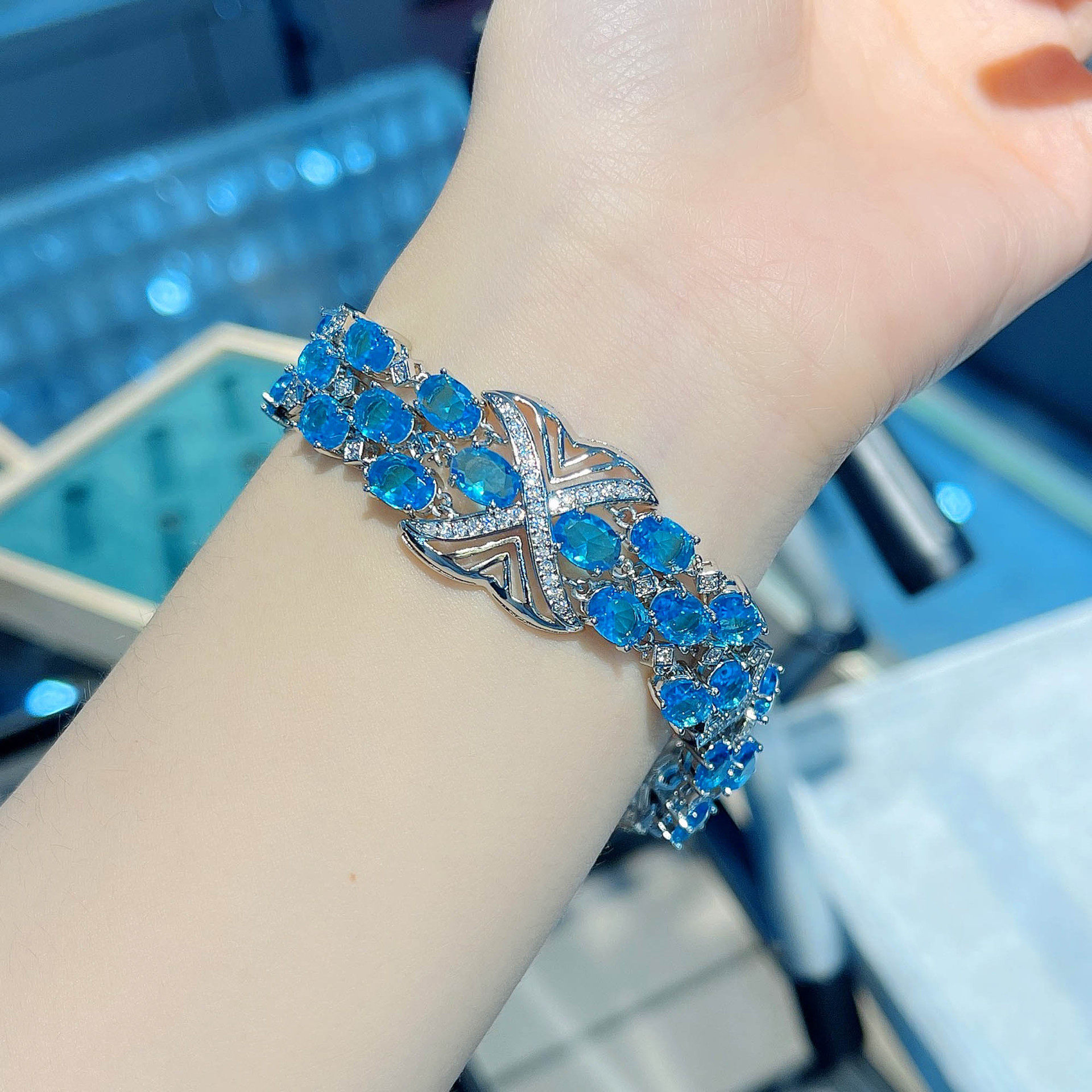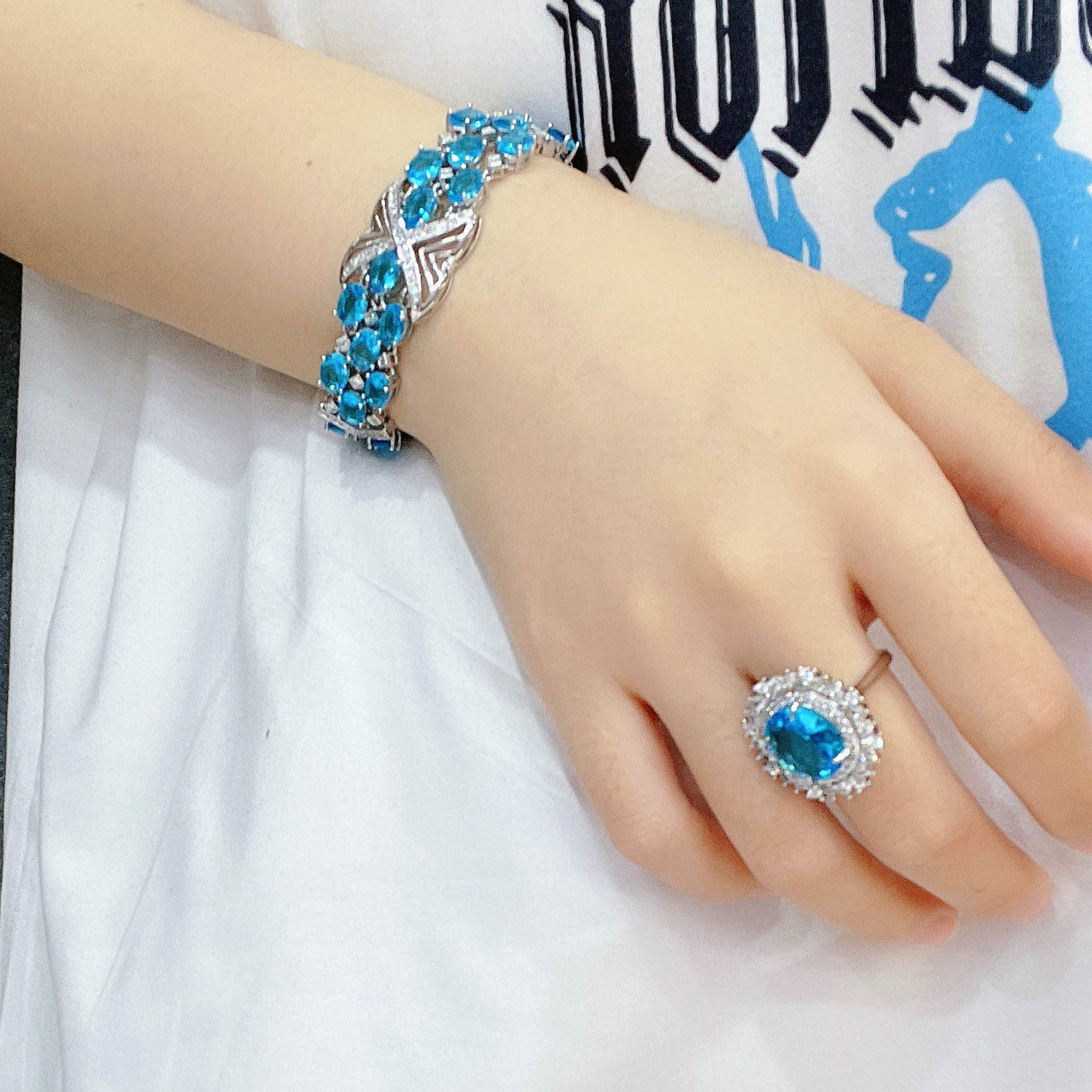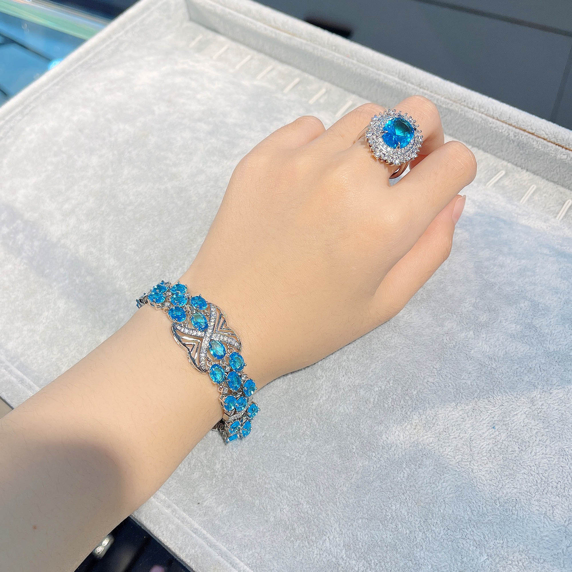 Те же высококачественные ювелирные изделия молодого Сяохуншу, комплект из высокоуглеродистой имитации швейцарского синего бриллианта, топаз ручной огранки для женщин, сравнимый с аквамарином