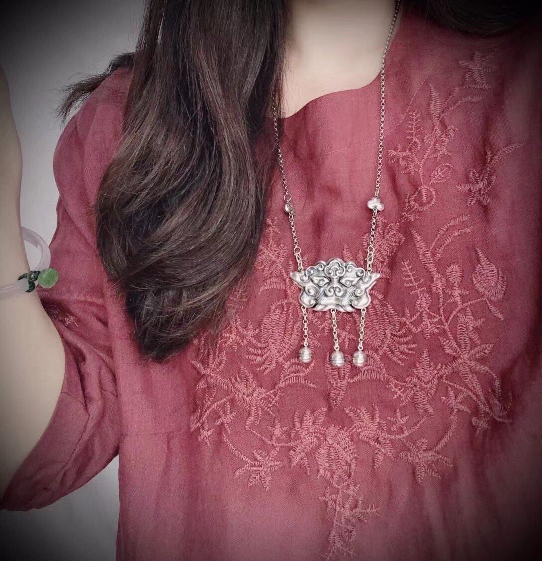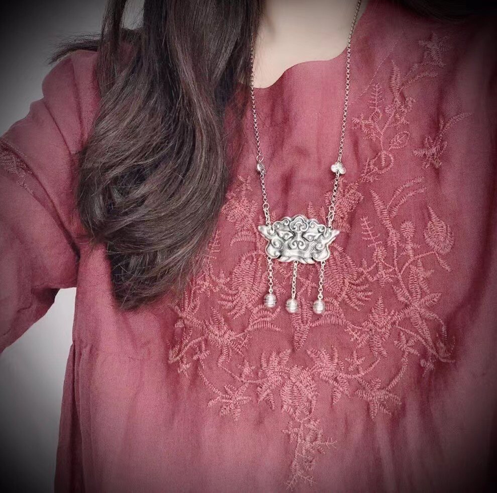 Этнический защитный амулет ручной работы, модный чокер, свитер, ожерелье, серебро 925 пробы, этнический стиль, женский стиль