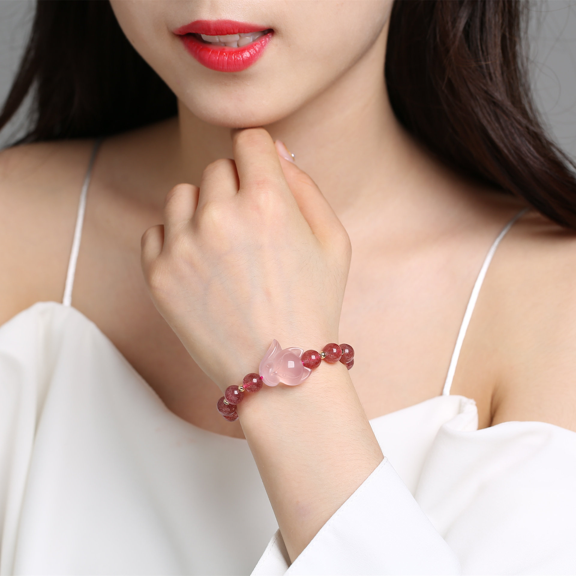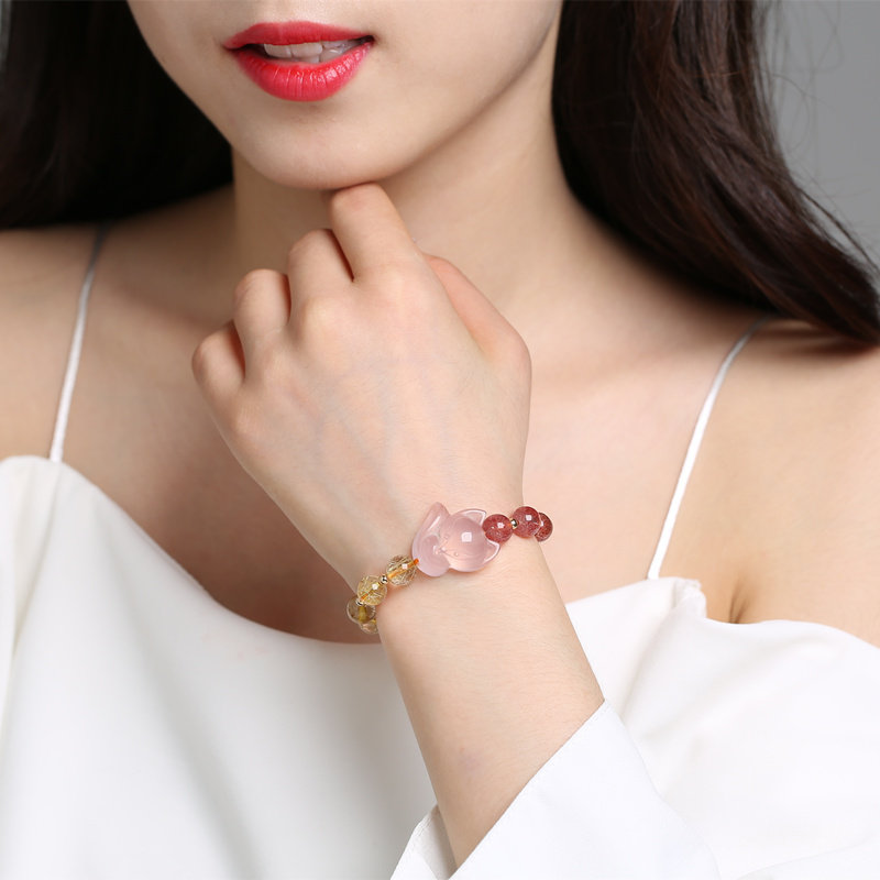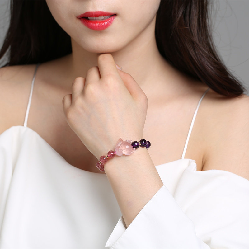 Натуральный кварц с аметистом, браслет из кварца, аксессуар, лиса, енот, лунный камень, подарок на день рождения