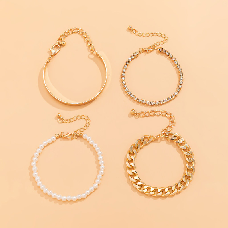 Комплект, бусины из жемчуга, брендовый небольшой браслет, дизайнерское модное ювелирное украшение, 4 шт, европейский стиль