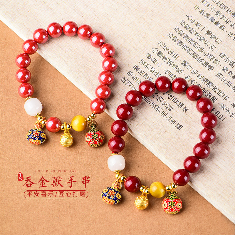 Мужской оберег на день рождения, браслет из красной нити для влюбленных, четки из круглых бусин, цвета киновари, подарок на день рождения