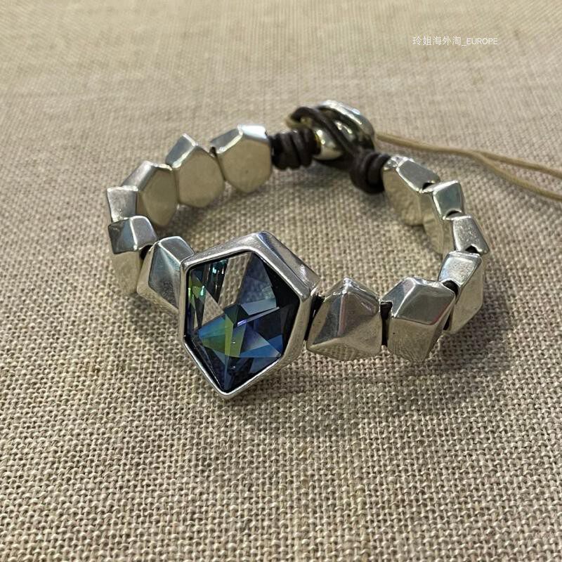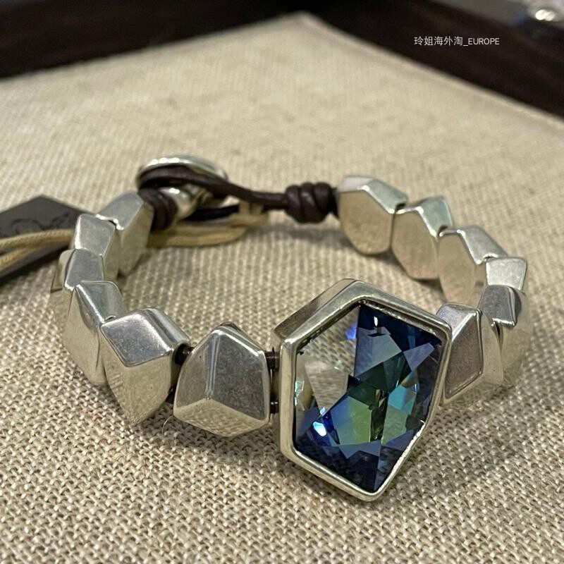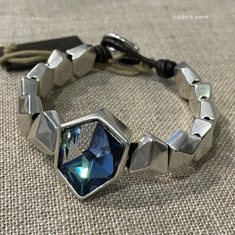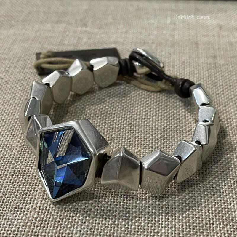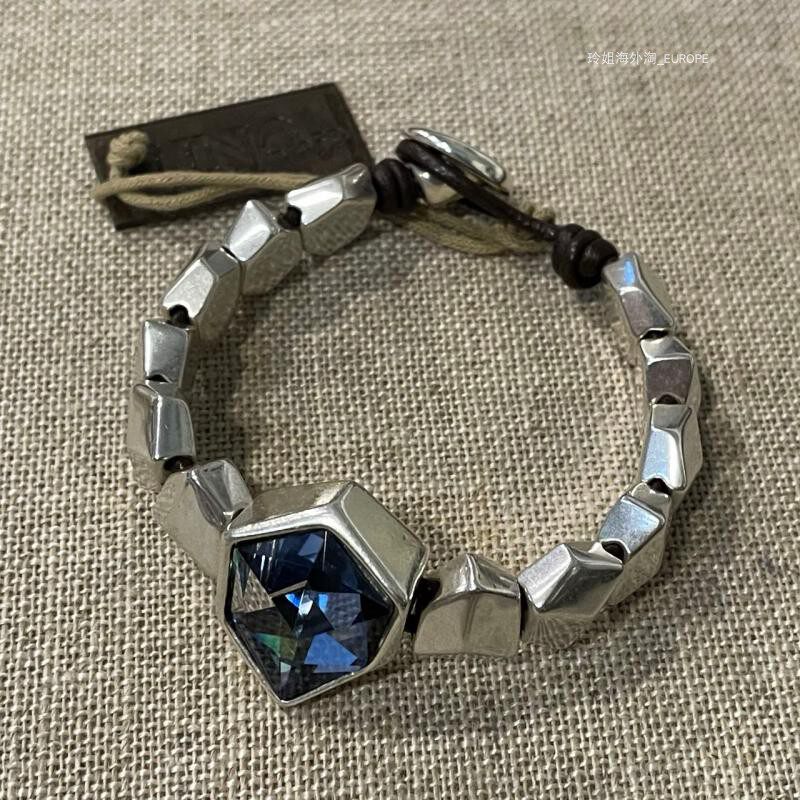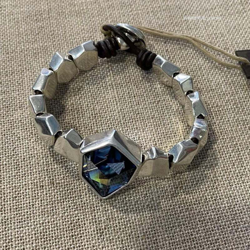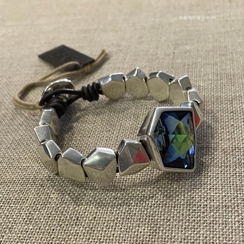 Распроданная страна/текущий испанский UNOde50, роскошная сине-зеленая воловья кожа с кристаллами, ручная работа, преувеличенная индивидуальность, светлая роскошь