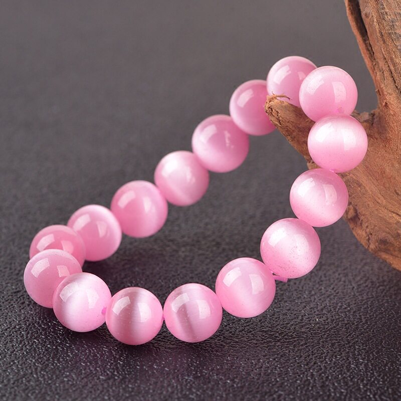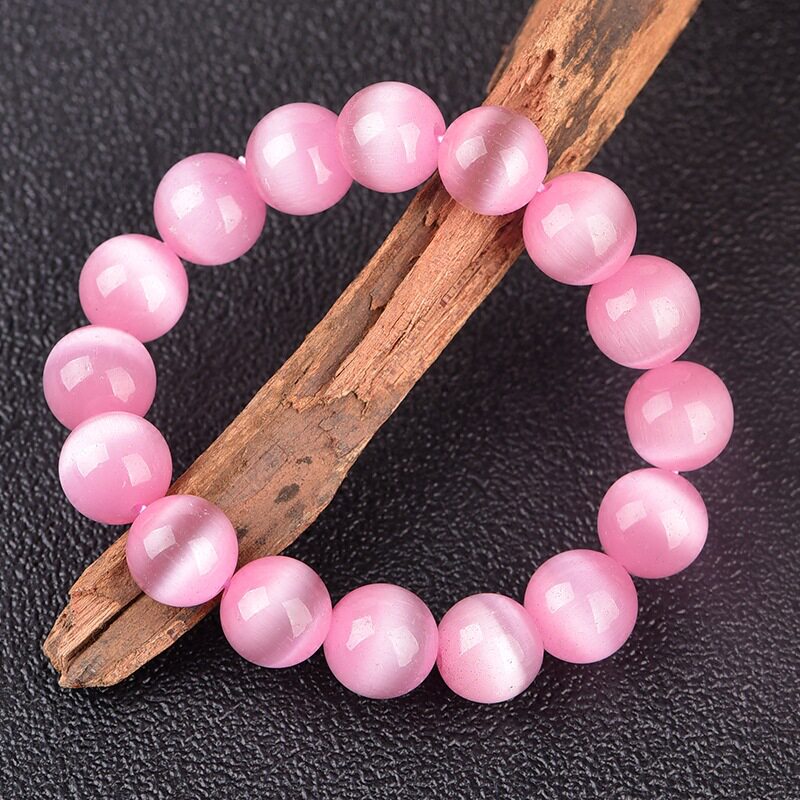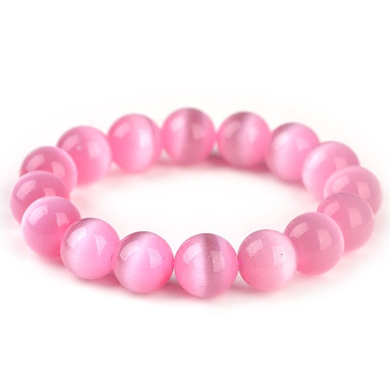 Милый розовый браслет с одной бусиной из натурального камня, аксессуар, кошачий глаз, подарок на день рождения