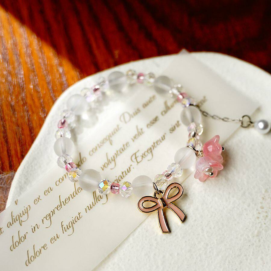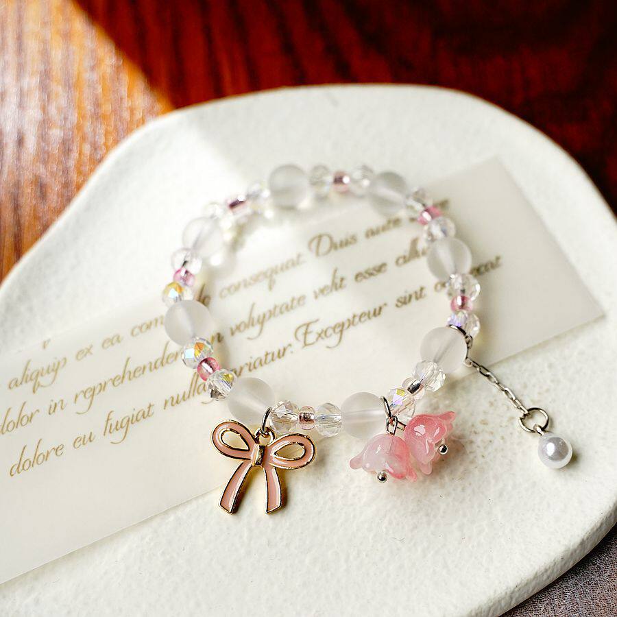 Розовый синий сиреневый браслет из жемчуга с бантиком, простой и элегантный дизайн