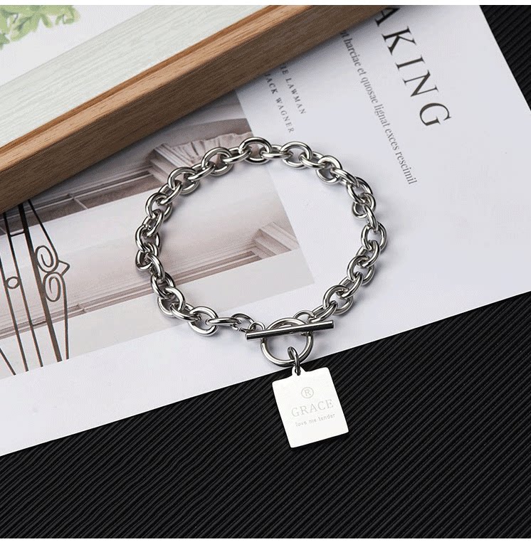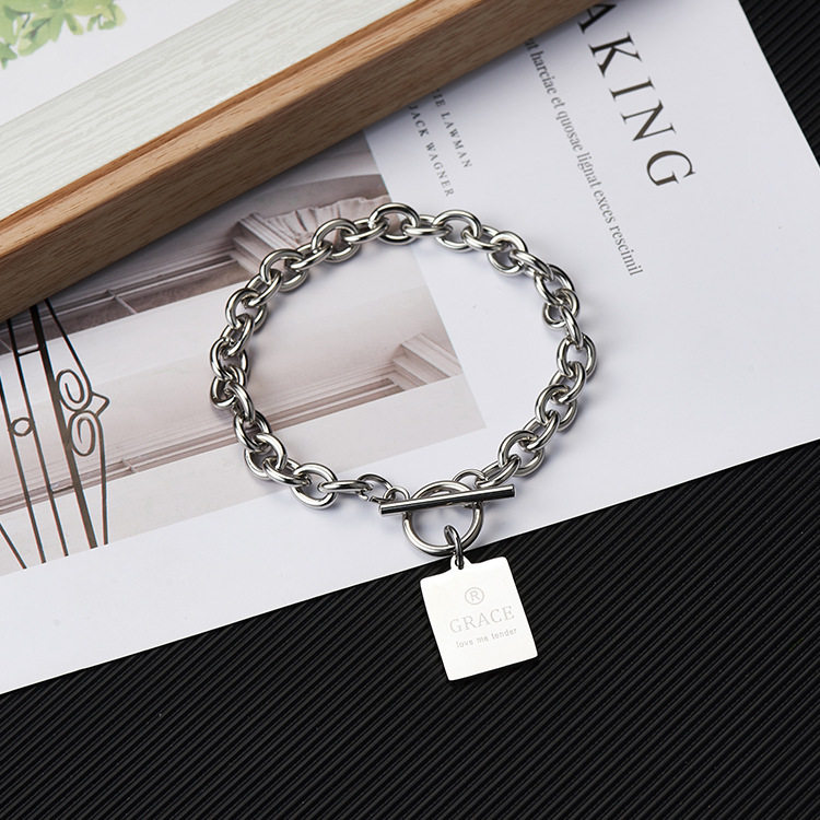 Брендовый браслет в стиле хип-хоп из нержавеющей стали для влюбленных подходит для мужчин и женщин для школьников, цепь, в корейском стиле, простой и элегантный дизайн