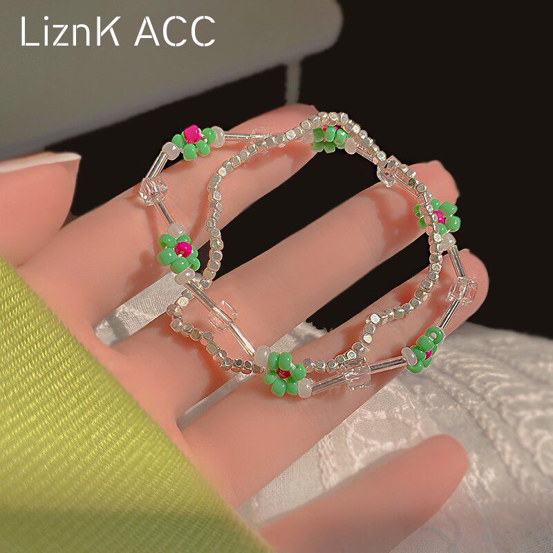 Tide, зеленый небольшой дизайнерский браслет, в цветочек, коллекция 2022, тренд сезона