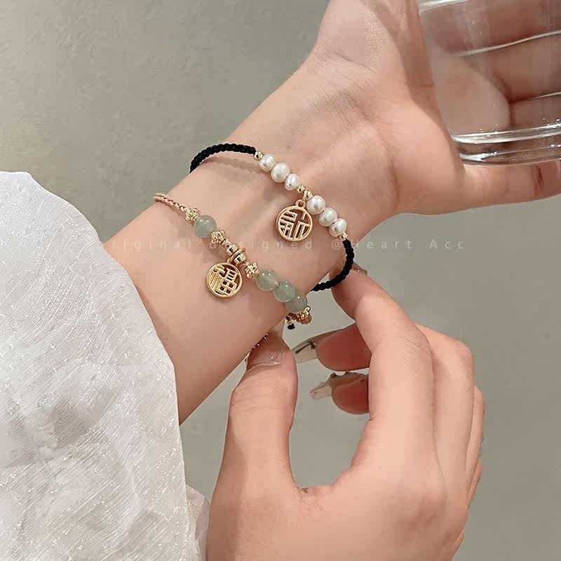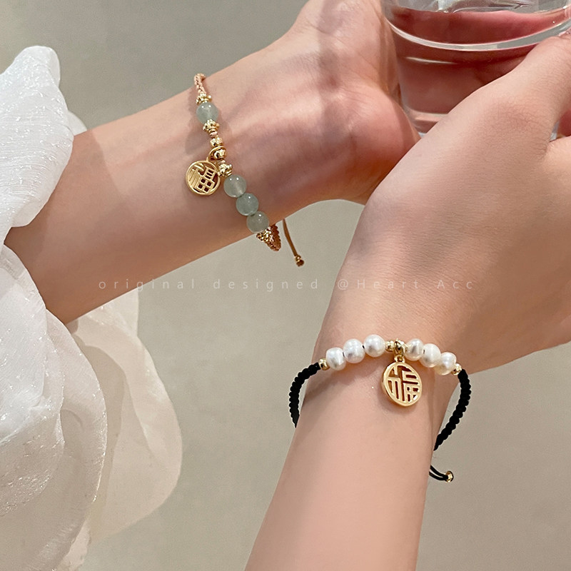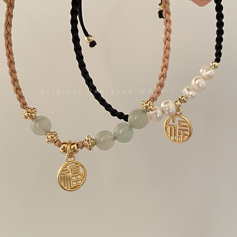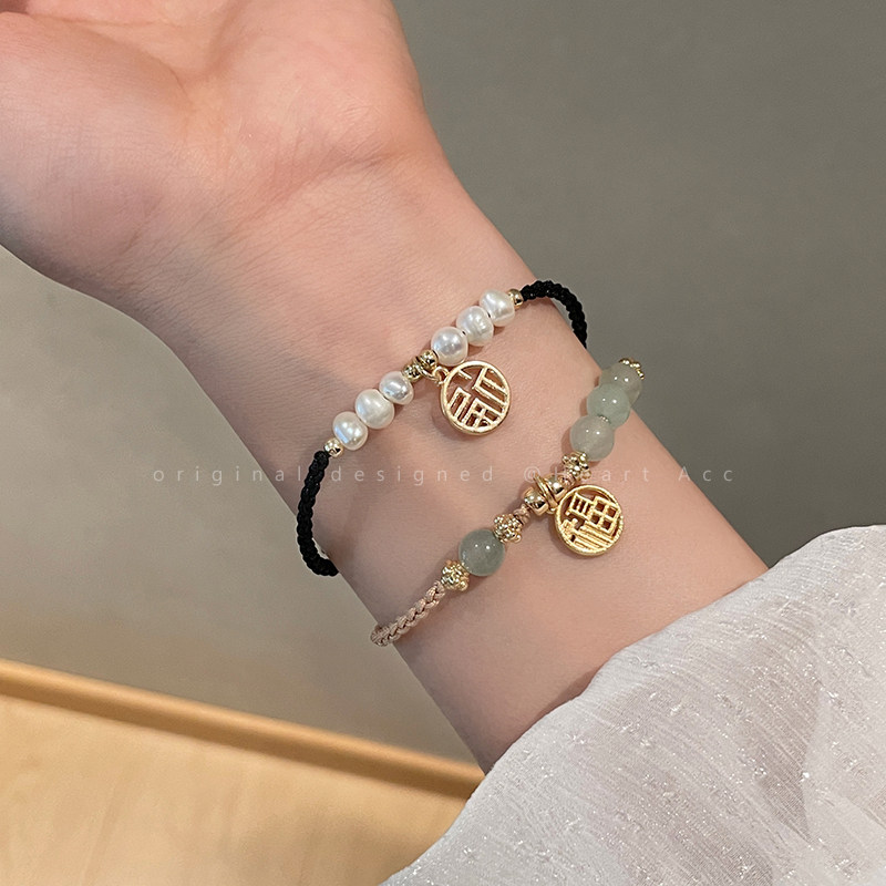 Натуральный плетеный браслет из нефрита из жемчуга, подвеска, ювелирное украшение, легкий роскошный стиль