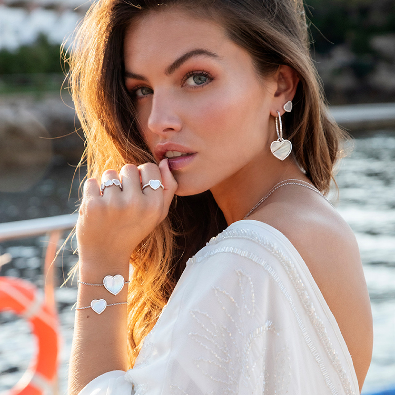 - Браслет из белого перламутра + серьги