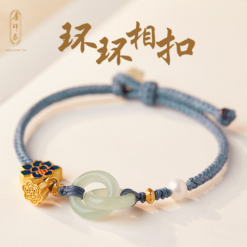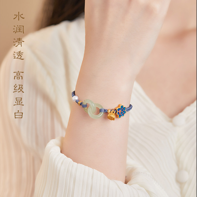 Защитный амулет из нефрита, пряжка, плетеный браслет с одной бусиной