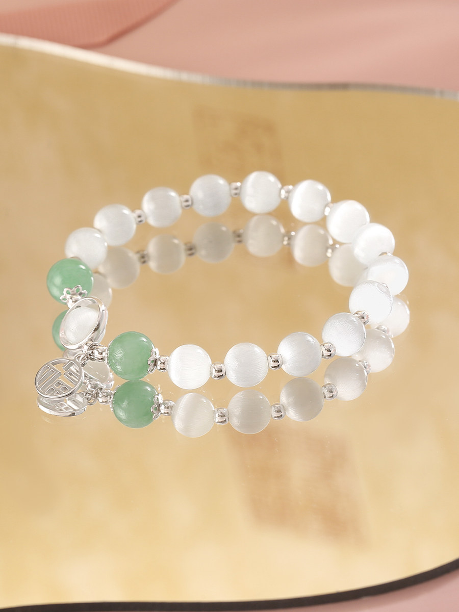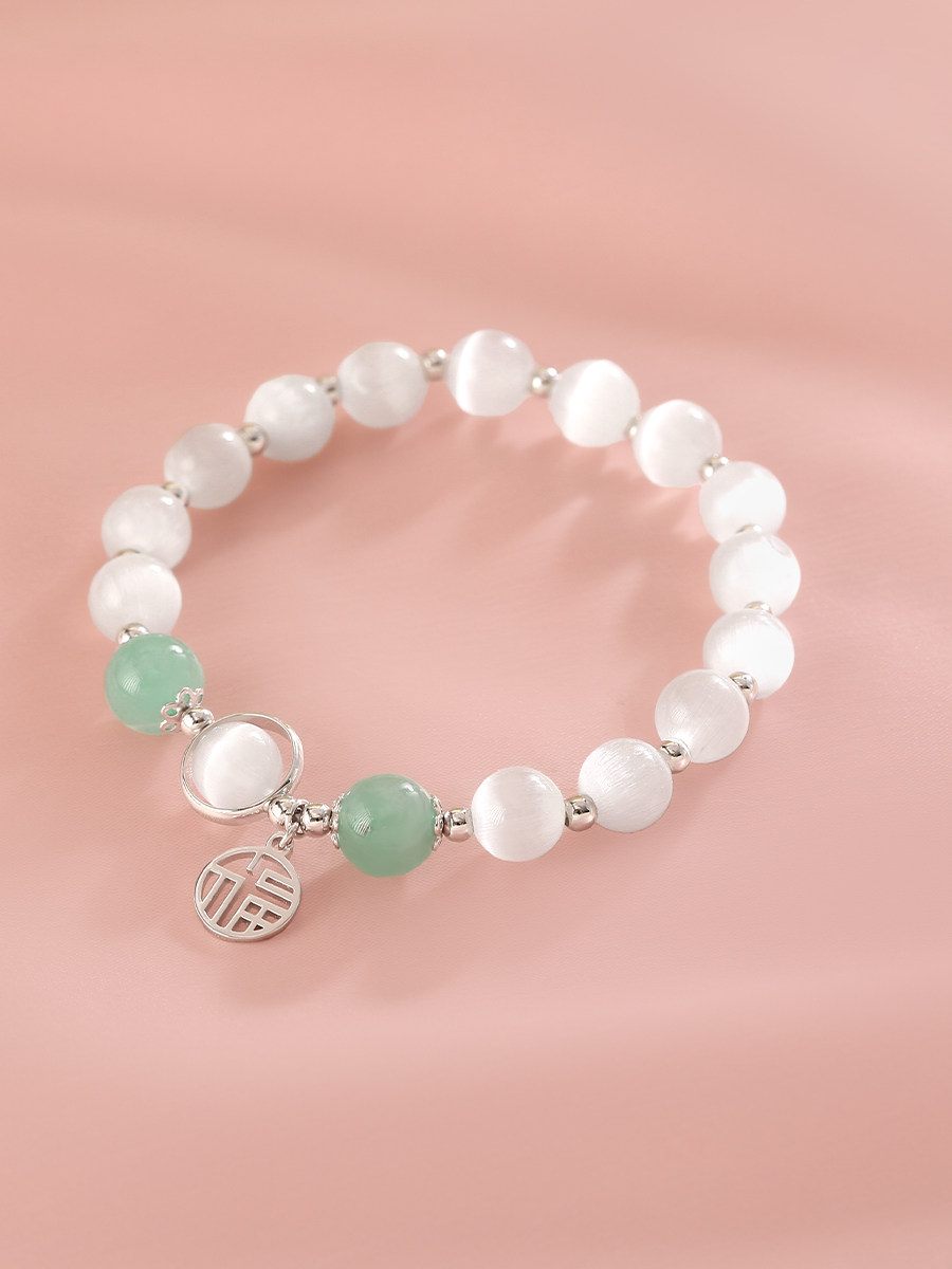 Браслет из бисера, ювелирное украшение, серебро 925 пробы, кошачий глаз, коллекция 2022, изысканный стиль, яркий броский стиль, простой и элегантный дизайн
