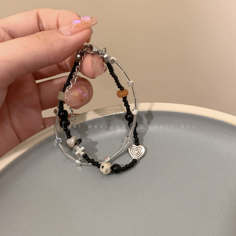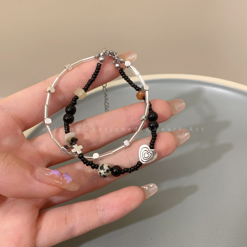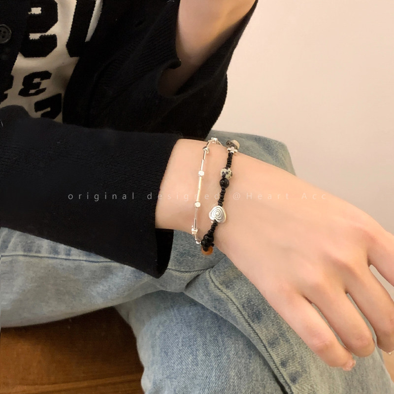 Черный брендовый небольшой браслет из бисера, дизайнерское ретро ювелирное украшение для влюбленных, легкий роскошный стиль, изысканный стиль
