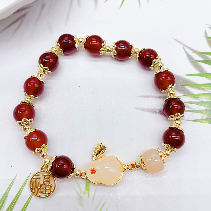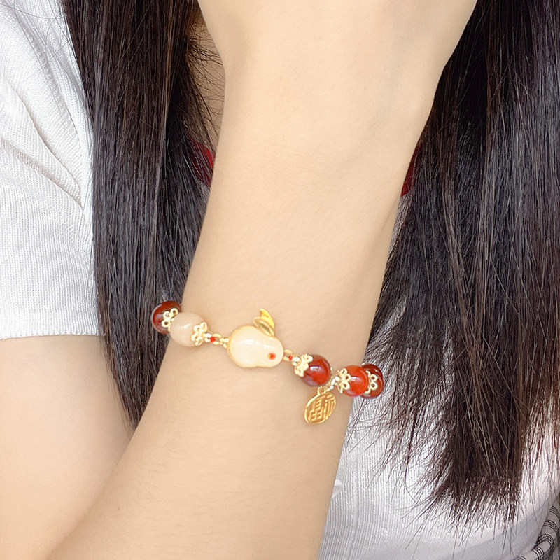 Оберег на день рождения, ониксовый брендовый кролик с бусинами, браслет с одной бусиной, ювелирное украшение, аксессуар