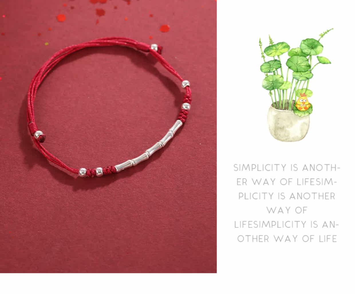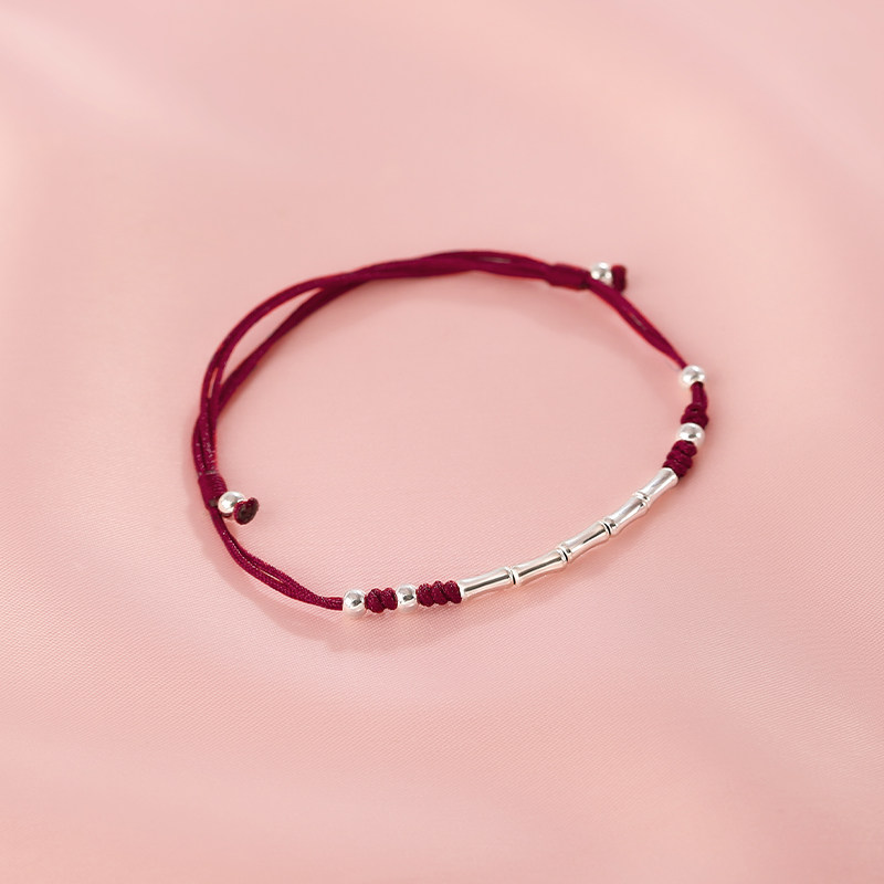 Плетеный бамбуковый браслет из красной нити, оберег на день рождения, серебро 925 пробы, китайский стиль, подарок на день рождения