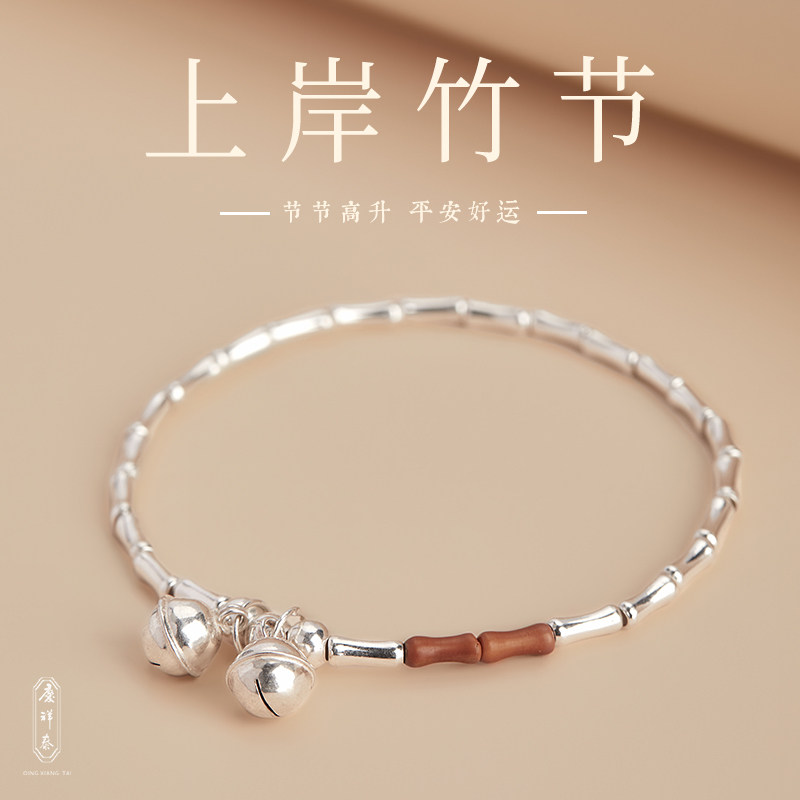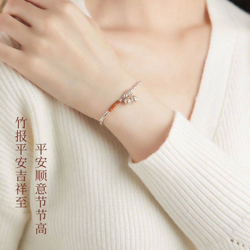 Бамбуковый браслет, колокольчик, серебро 925 пробы, женский стиль, подарок на день рождения