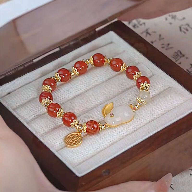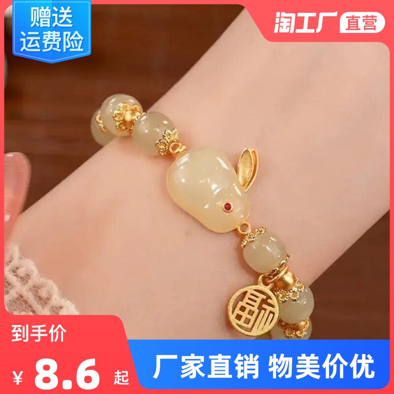 - Q22 Green Pearl Jade Bracelet Rabbit