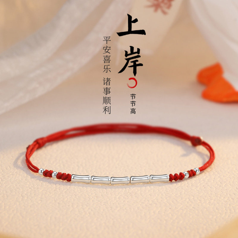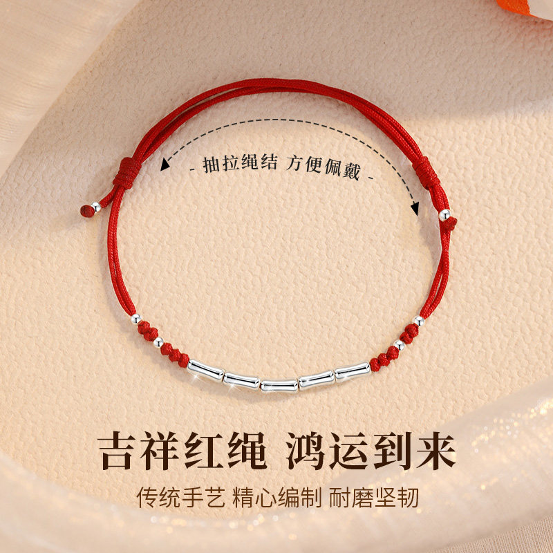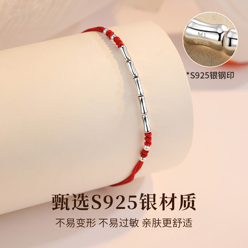 Бамбуковый браслет из красной нити, плетеный оберег на день рождения, серебро 925 пробы, подарок на день рождения