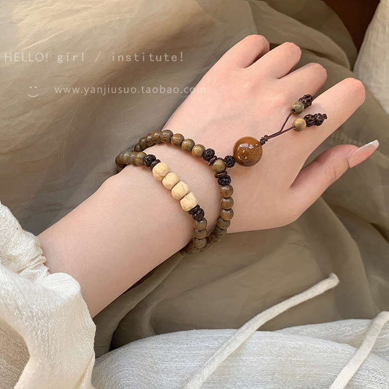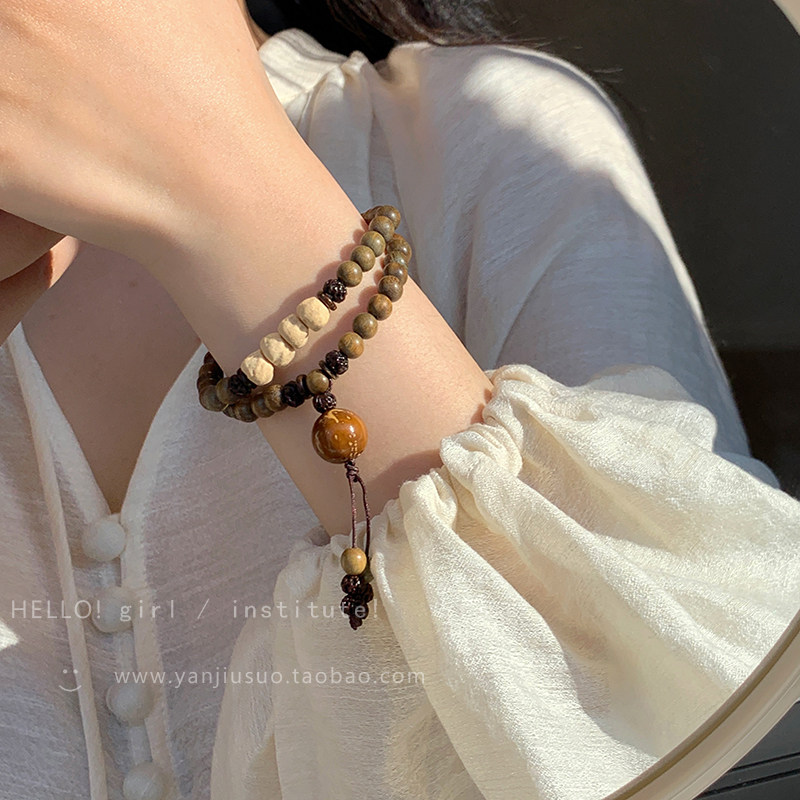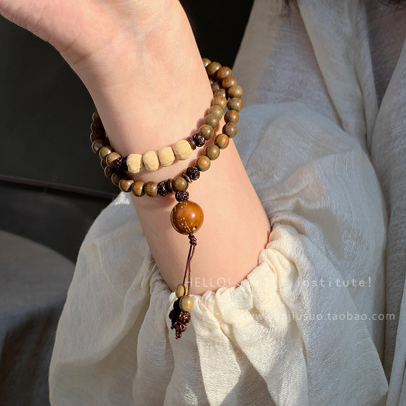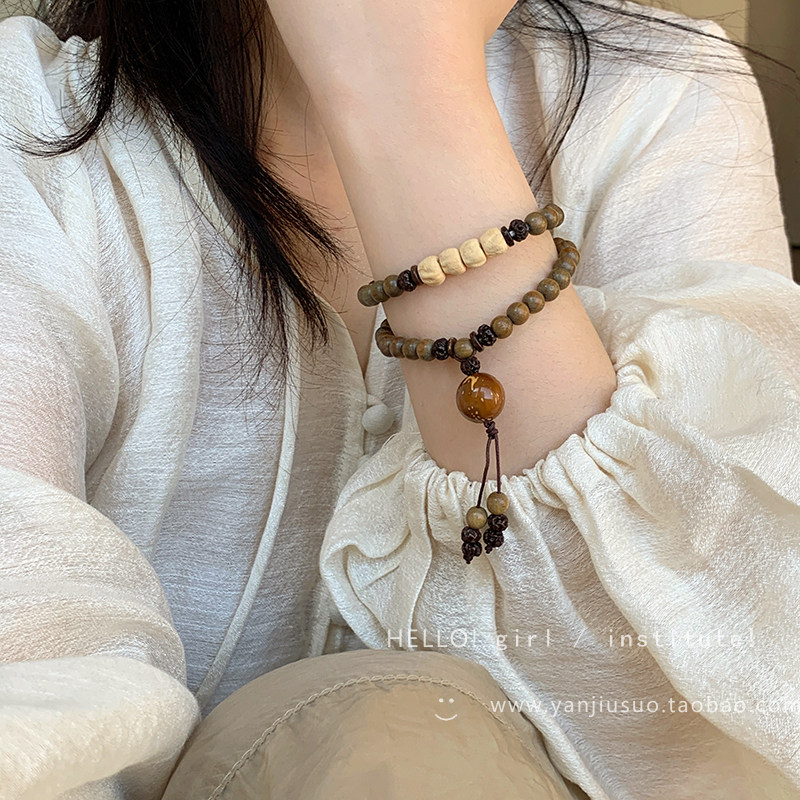 Четки из круглых бусин из зеленого сандала из сандалового дерева, изысканный этнический браслет, универсальное ювелирное украшение, аксессуар, китайский стиль, легкий роскошный стиль, женский стиль, этнический стиль