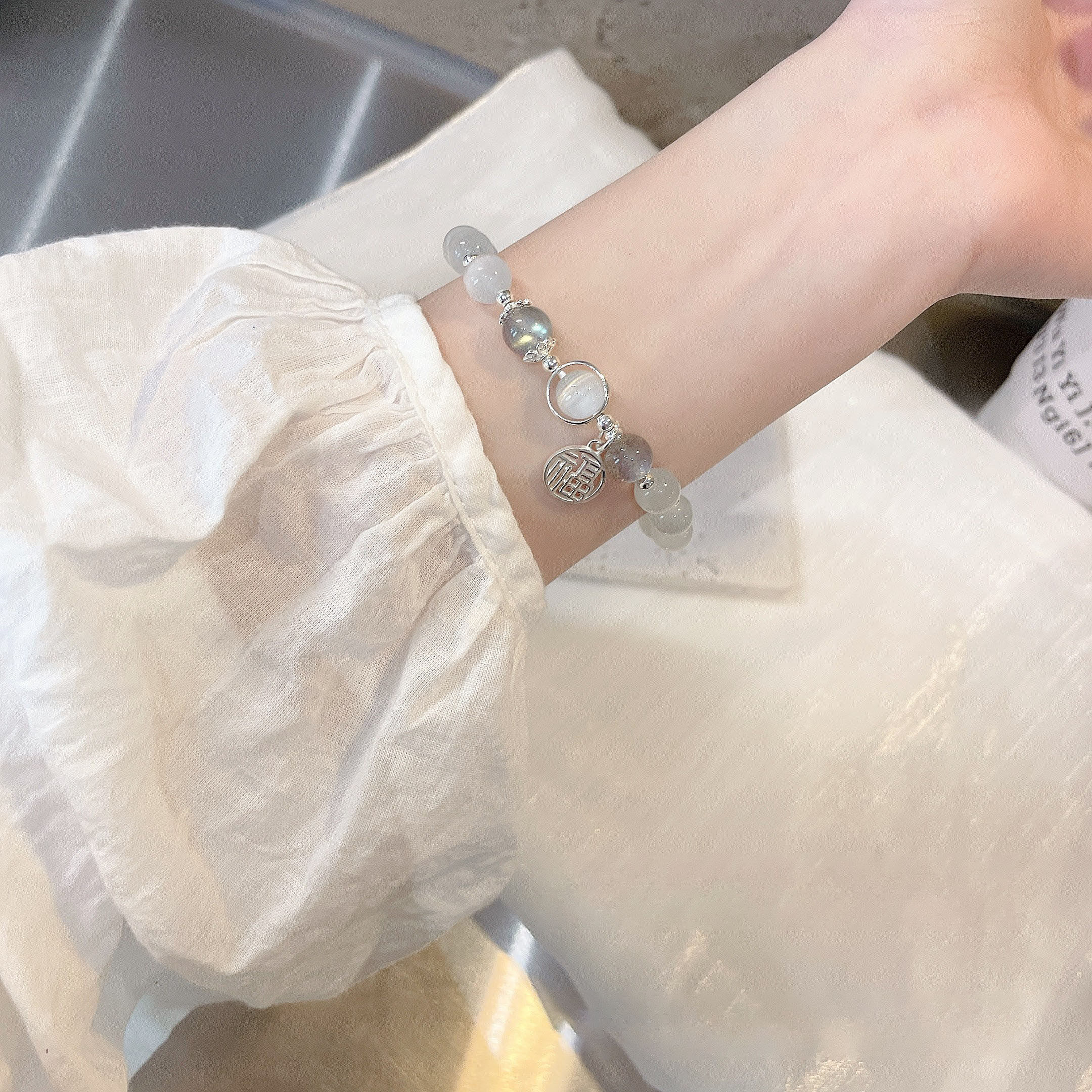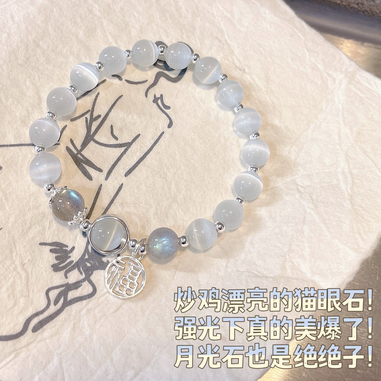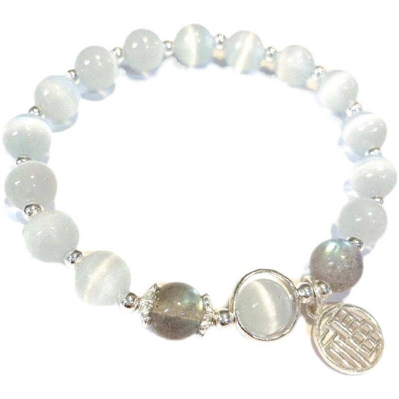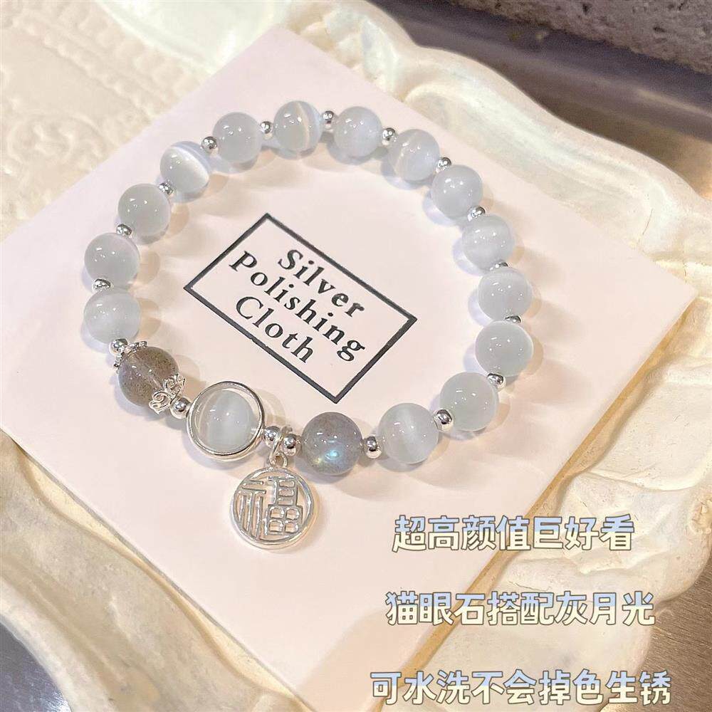 Ретро браслет с одной бусиной, кошачий глаз, изысканный стиль, лунный камень