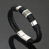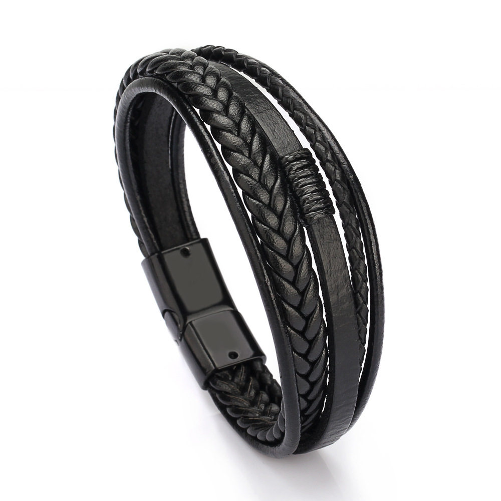 Ренди -кожаные браслеты мужчины из нержавеющей стали многослойный брай