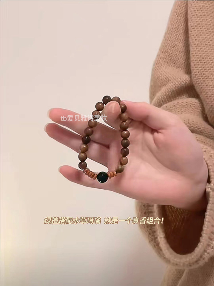 Натуральный диффузор из зеленого сандала, агатовый браслет из сандалового дерева, четки из круглых бусин из грецкого ореха, женский стиль