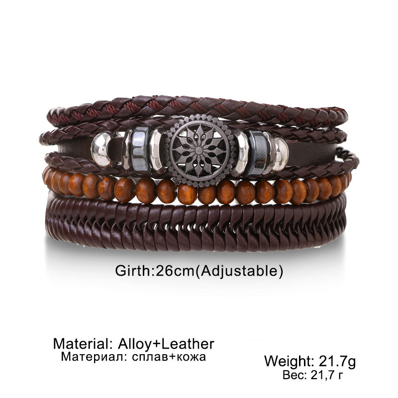 4pcs/ set бренд обертывание кожаные браслеты для Men Vintage Lif Life